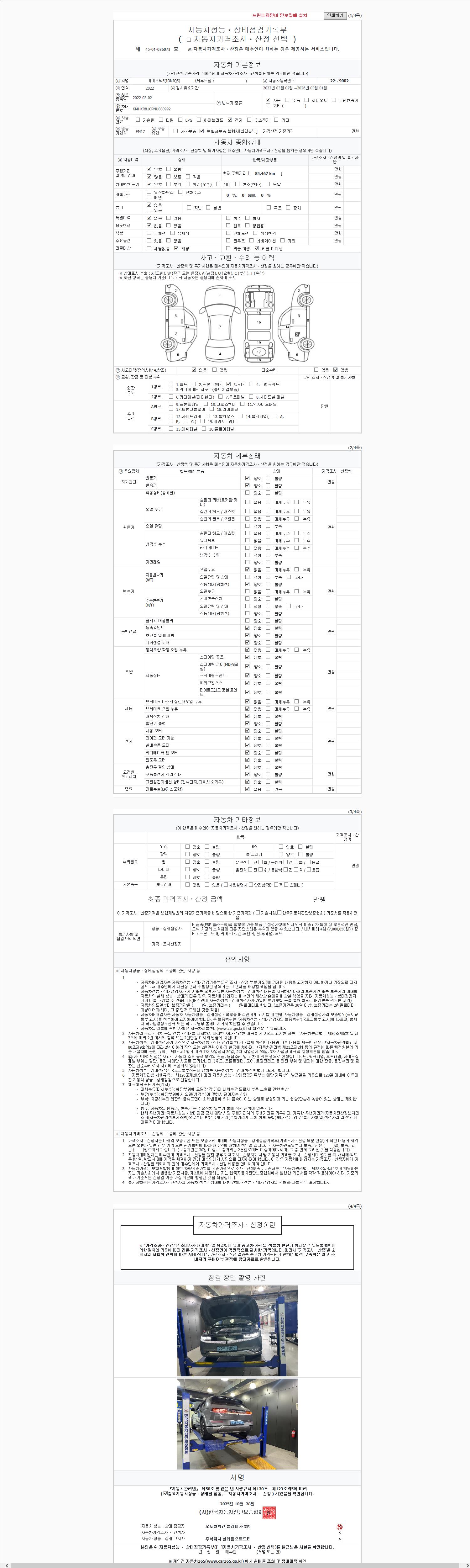 -중고자동차 매매업자를 통해 차량을 구입하실 경우 반드시 "중고자동차 성능, 상태점검 기록부"를 교뷰 받으셔야 하며, 매매업자는 반드시 의무 교부 하여야 압니다.