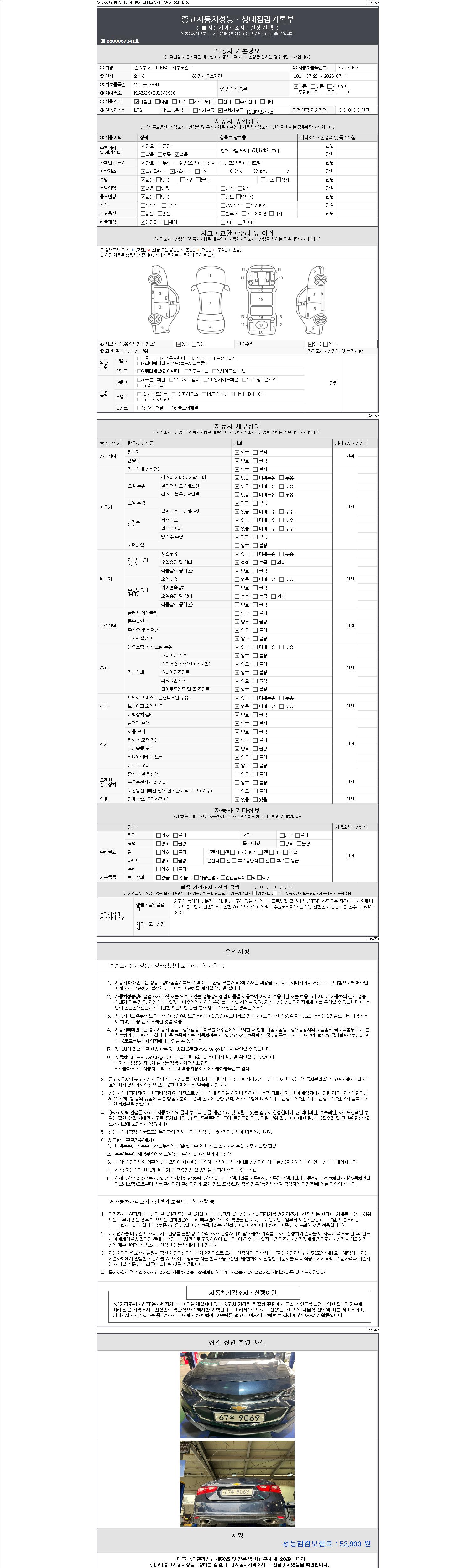| 주행거리 | 73,430 km | 차량번호 | 67우9069 |