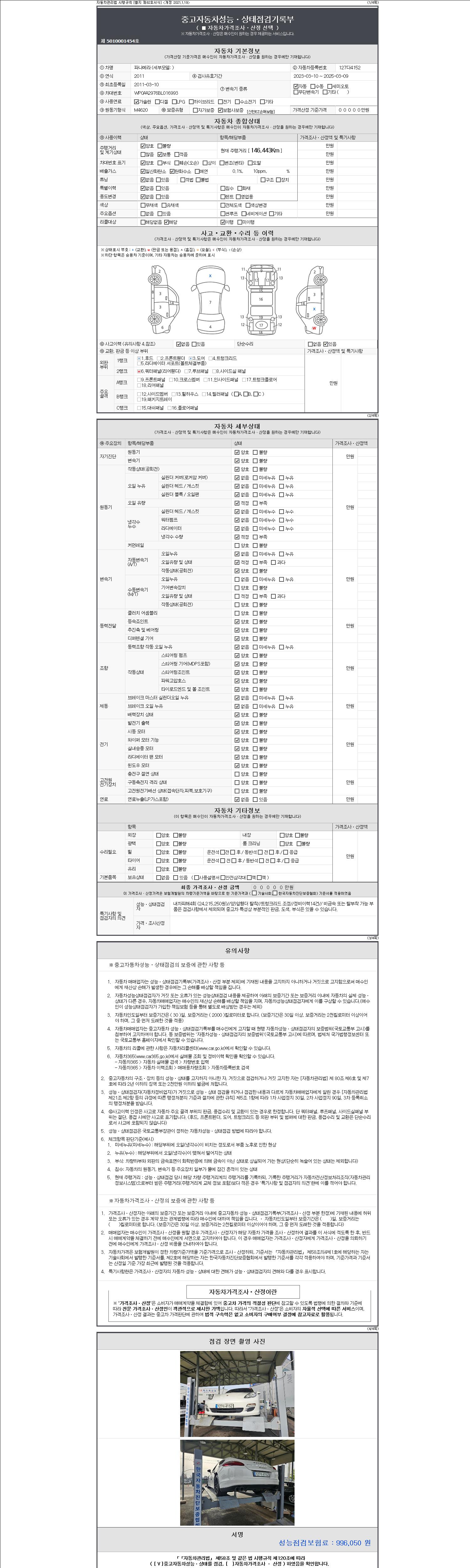 사고유무 성능기록부 참조 제시번호 제 2147483647 호