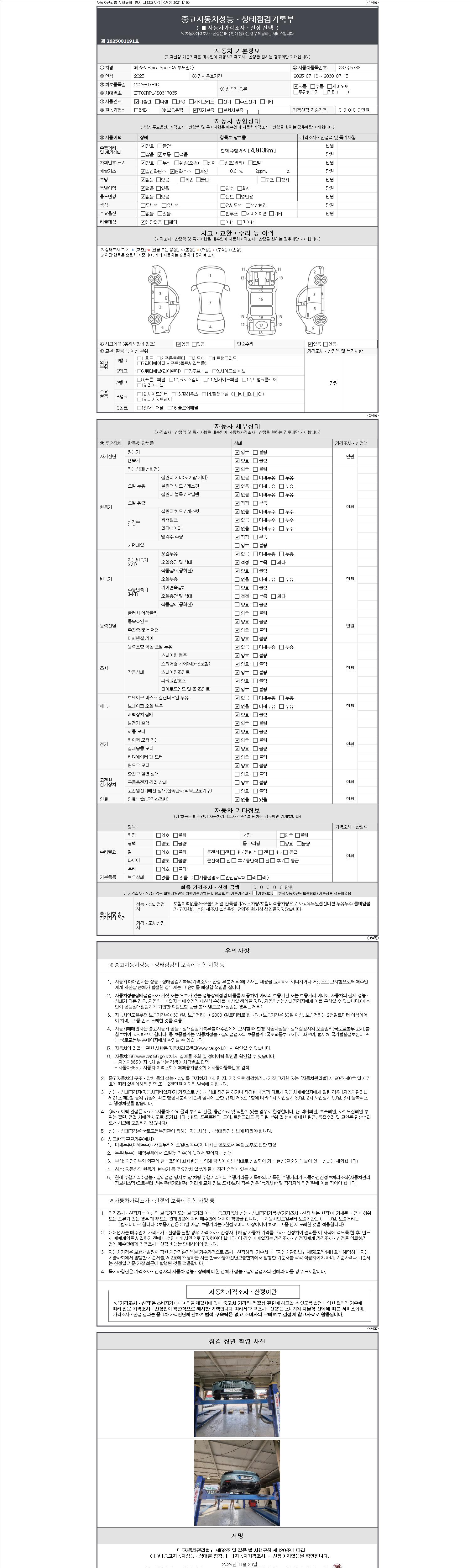 2. 차량 등록증이나 성능점검지 등을 상담자에게 요청및 확인하시고 사전에 미리 점검 하시기를 권유드립니다.