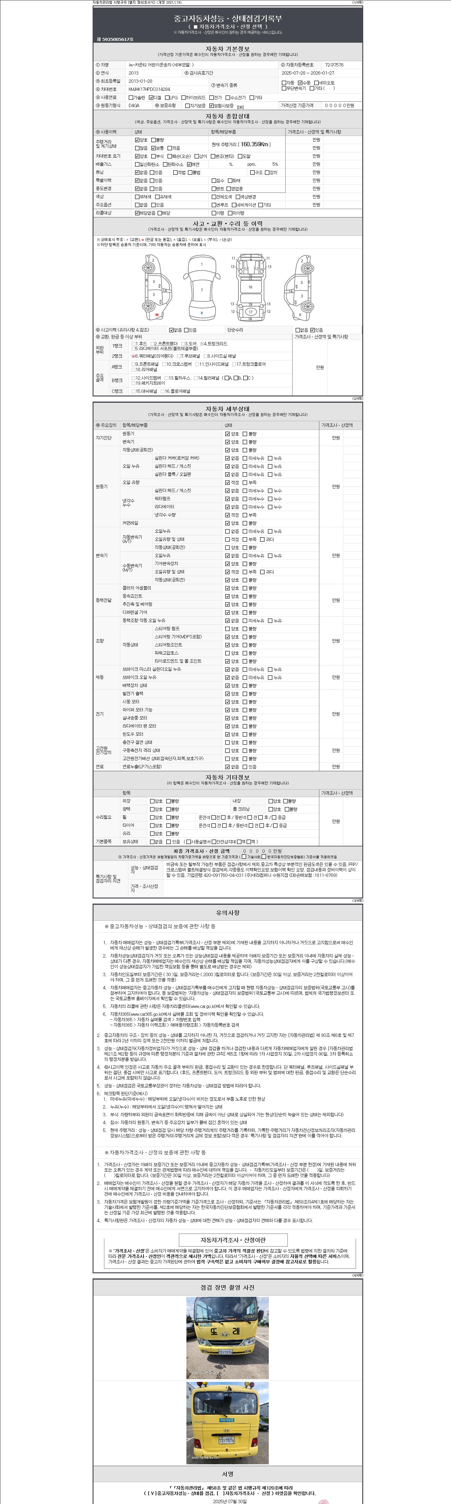 -중고자동차 매매업자를 통해 차량을 구입하실 경우 반드시 "중고자동차 성능, 상태점검 기록부"를 교뷰 받으셔야 하며, 매매업자는 반드시 의무 교부 하여야 압니다.