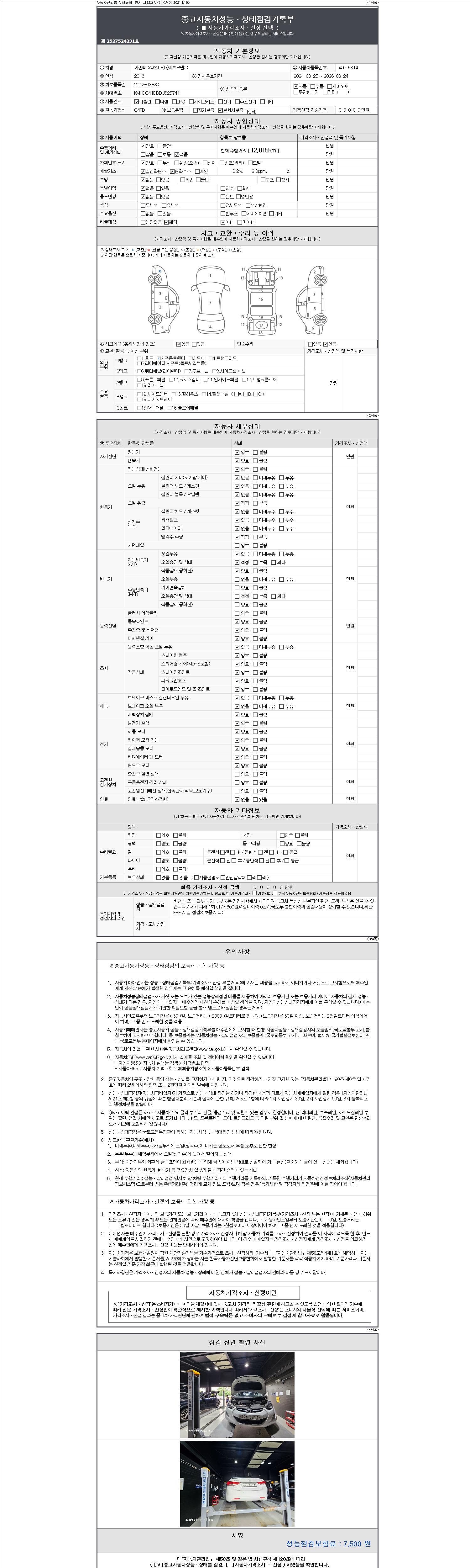 2. 차량 등록증이나 성능점검지 등을 상담자에게 요청및 확인하시고 사전에 미리 점검 하시기를 권유드립니다.