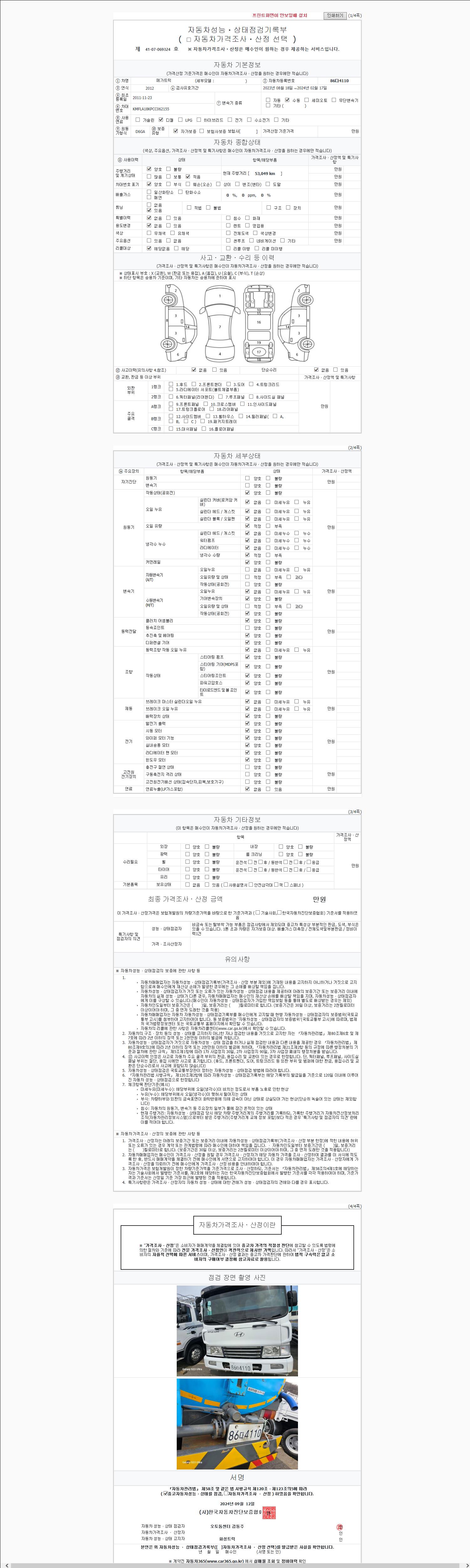 사고유무 성능기록부 참조 제시번호 제 2147483647 호