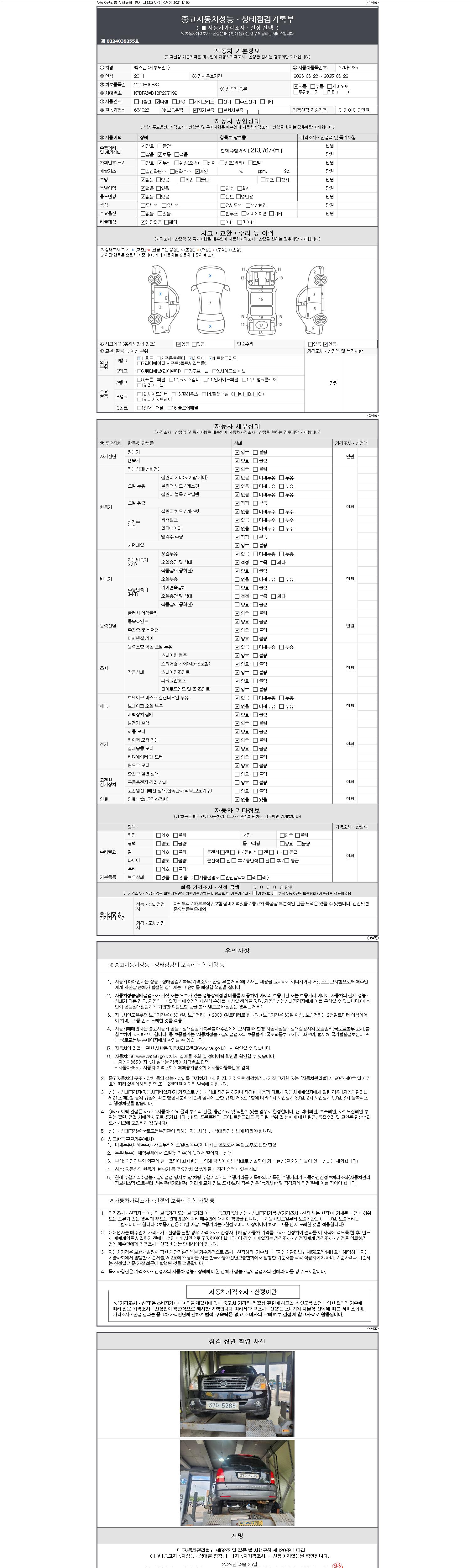 2. 차량 등록증이나 성능점검지 등을 상담자에게 요청및 확인하시고 사전에 미리 점검 하시기를 권유드립니다.