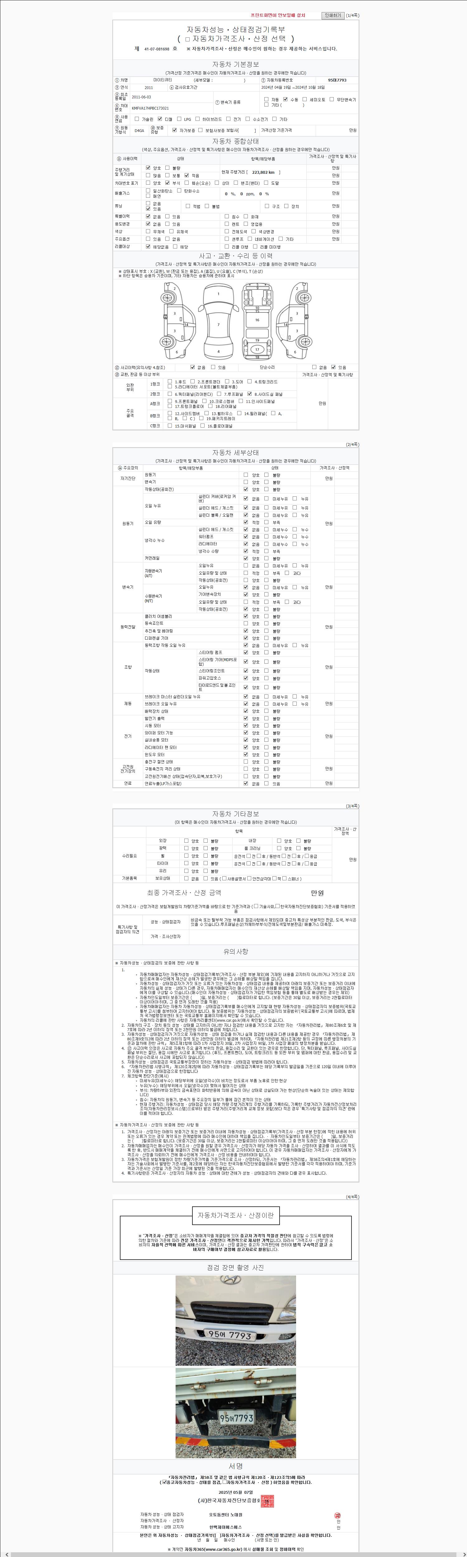 | 주행거리 | 223,702 km | 차량번호 | 95어7793 |