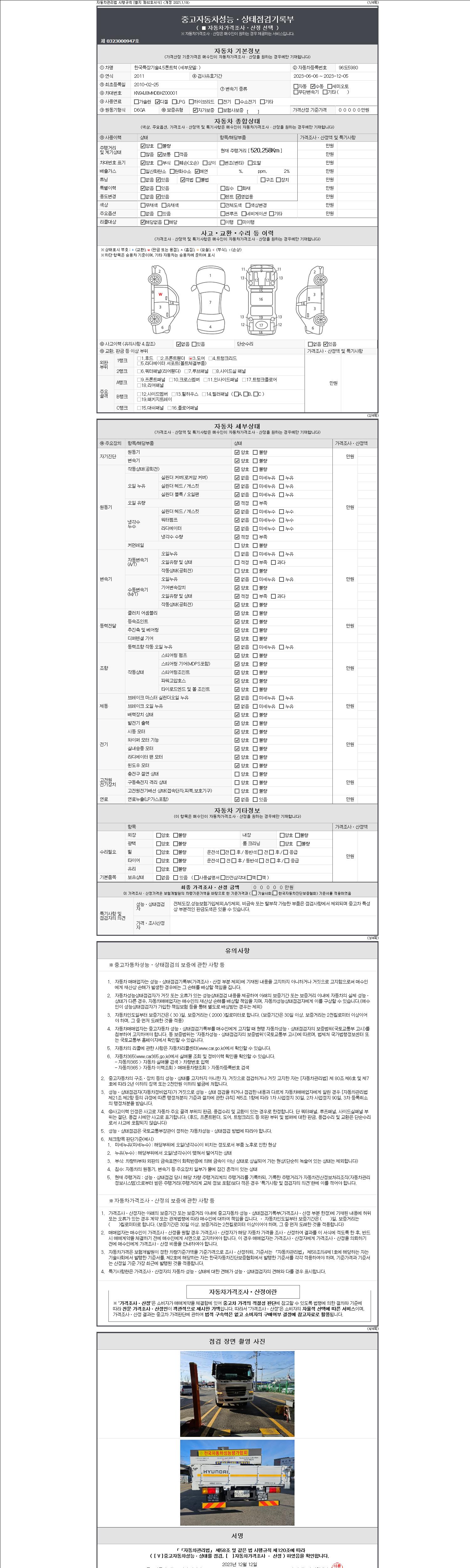 사고유무 성능기록부 참조 제시번호 제 2147483647 호