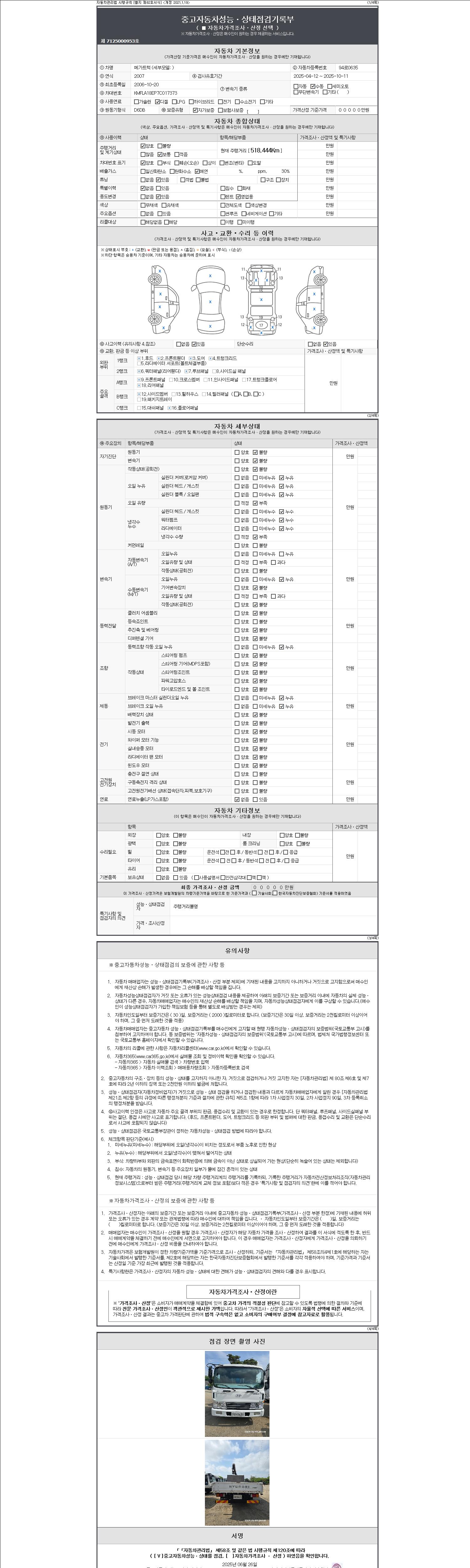 사고유무 성능기록부 참조 제시번호 제 2147483647 호