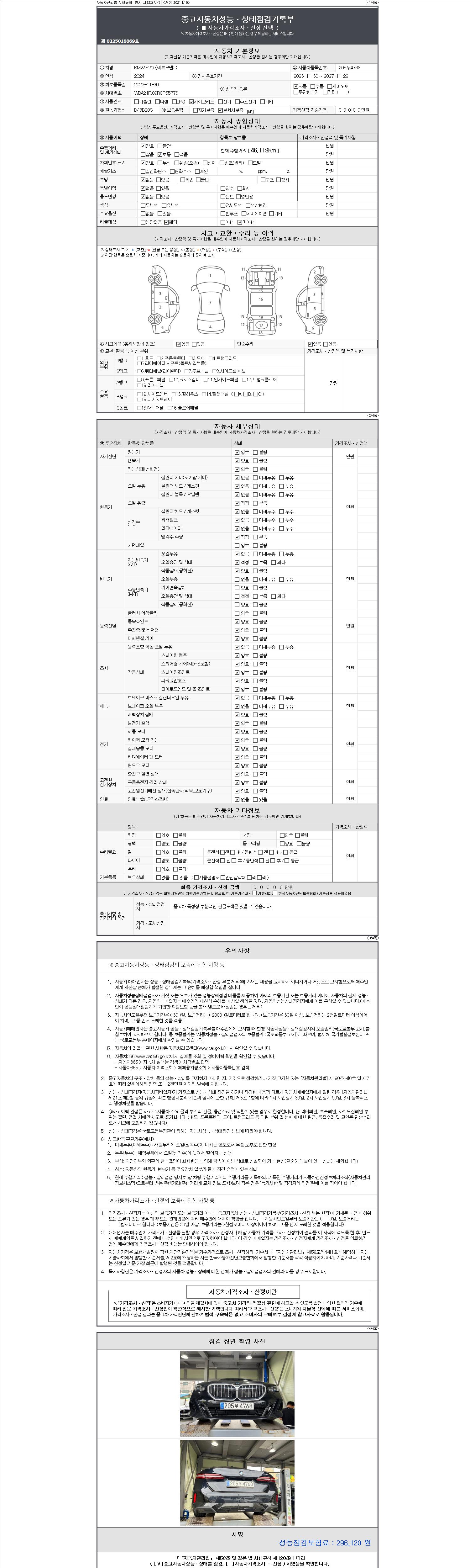 | 주행거리 | 46,119 km | 차량번호 | 205무4768 |