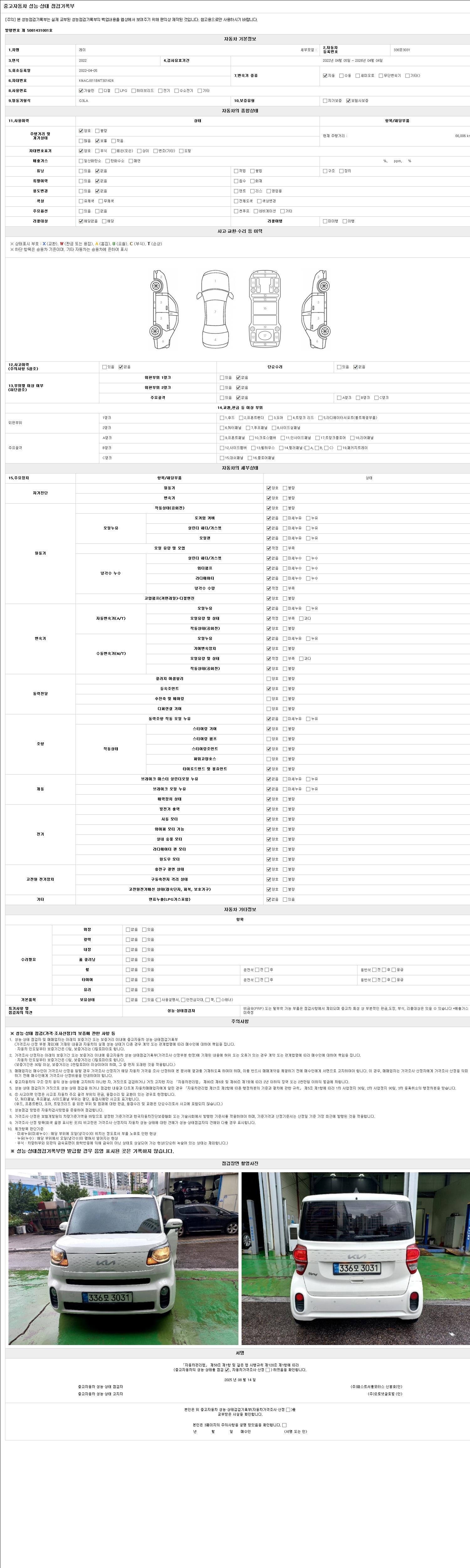 사고유무 성능기록부 참조 제시번호 제 2025026719 호
