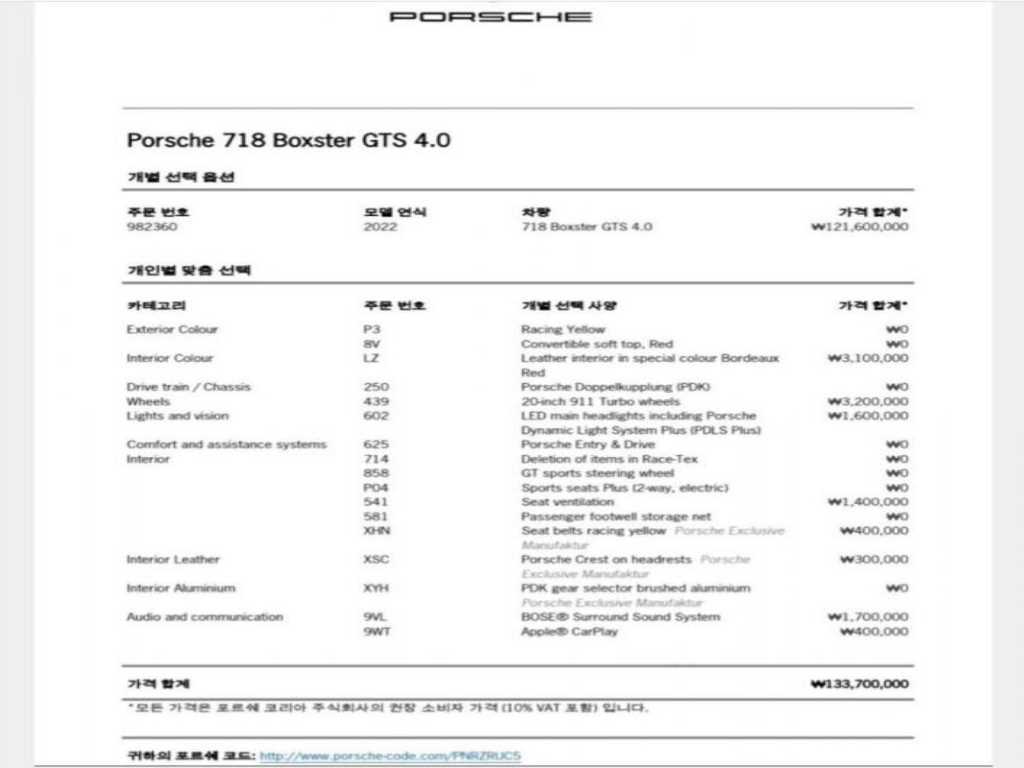 포르쉐 718 718 박스터 (16년~) 4.0 GTS