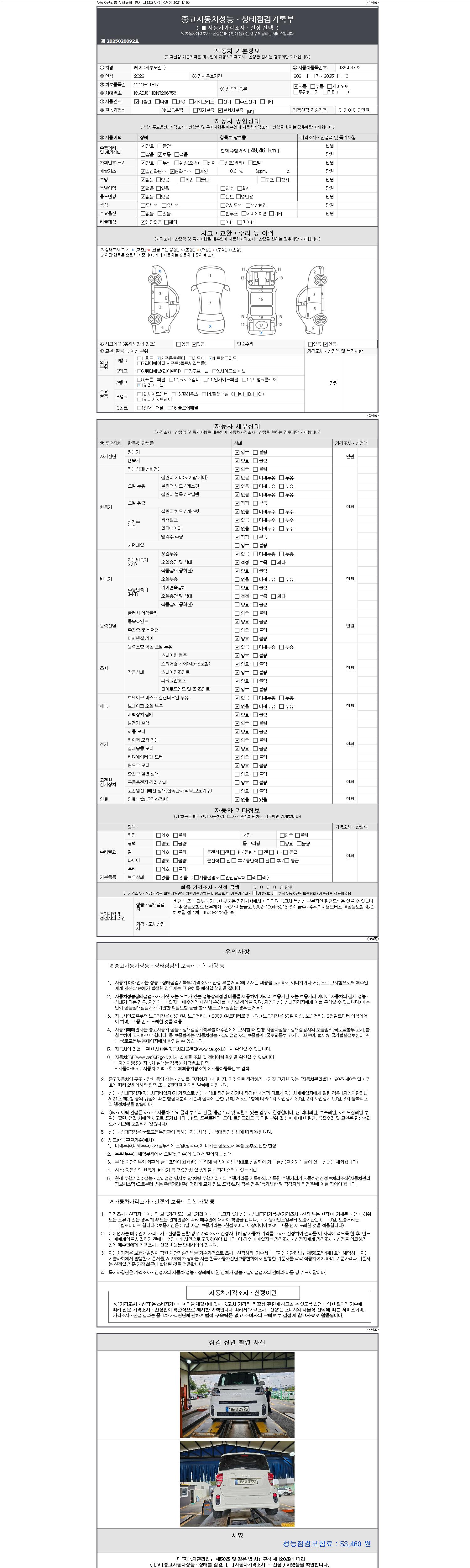 | 주행거리 | 49,461 km | 차량번호 | 186버3723 |