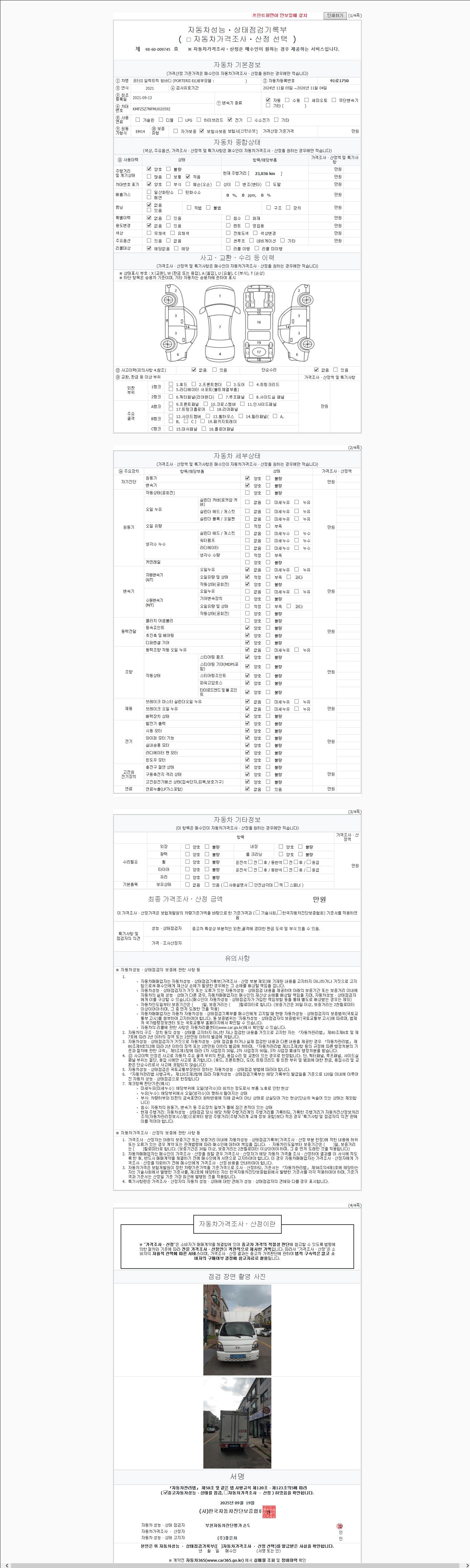 | 사고유무 | 성능기록부 참조 | 제시번호 | 제 2025094973 호 |