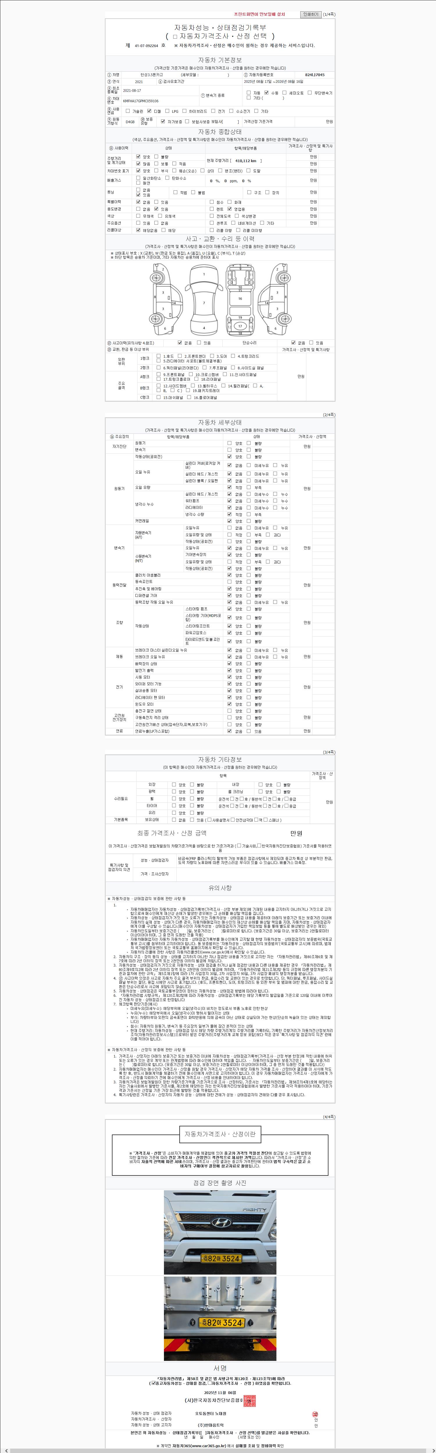 | 주행거리 | 410,110 km | 차량번호 | 824나7045 |