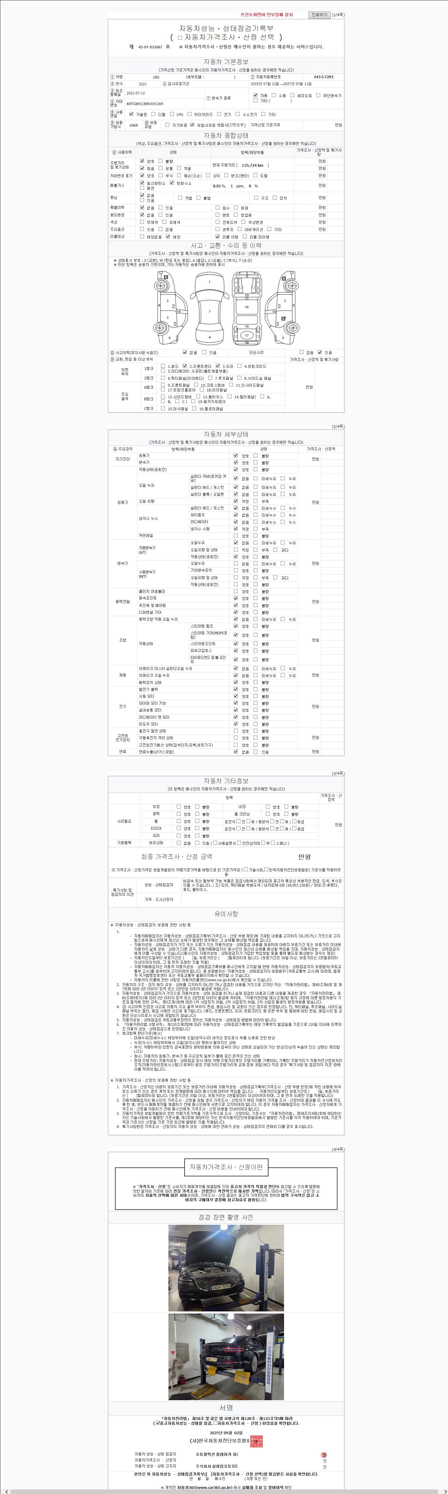 | 주행거리 | 135,724 km | 차량번호 | 243수7293 |