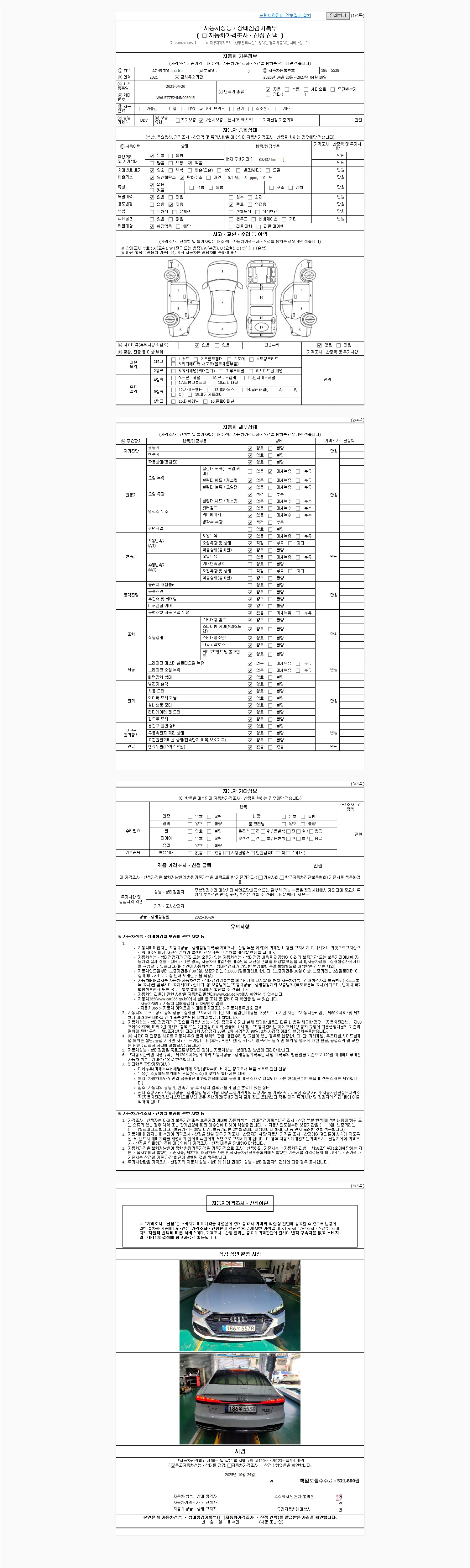 사고유무 성능기록부 참조 제시번호 제 2025035659 호