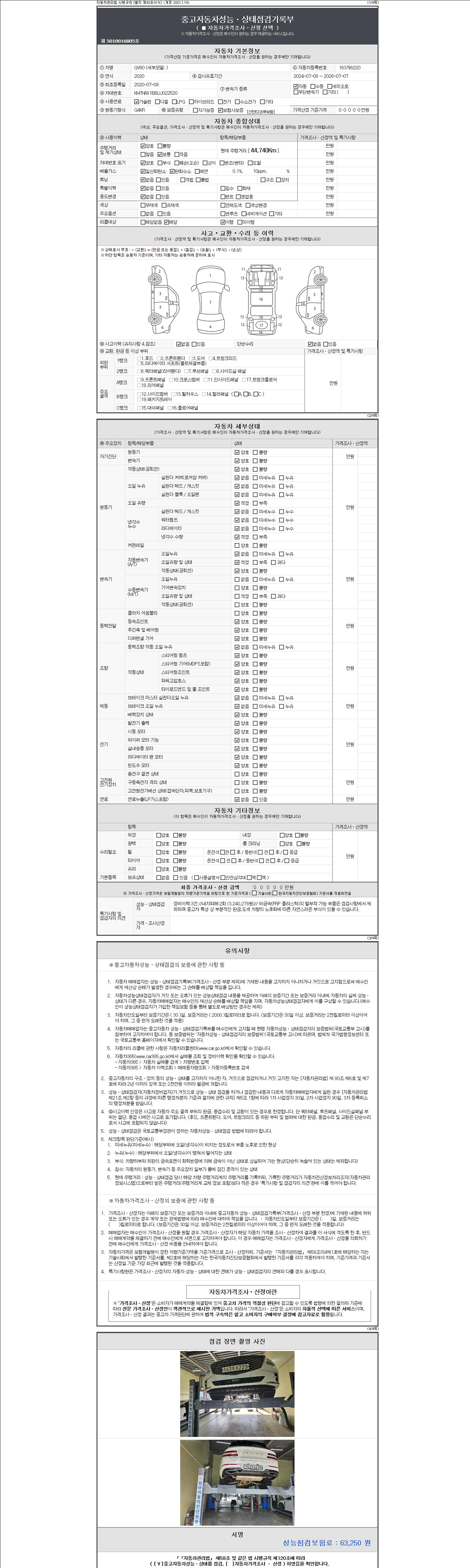 사고유무 성능기록부 참조 제시번호 제 2147483647 호