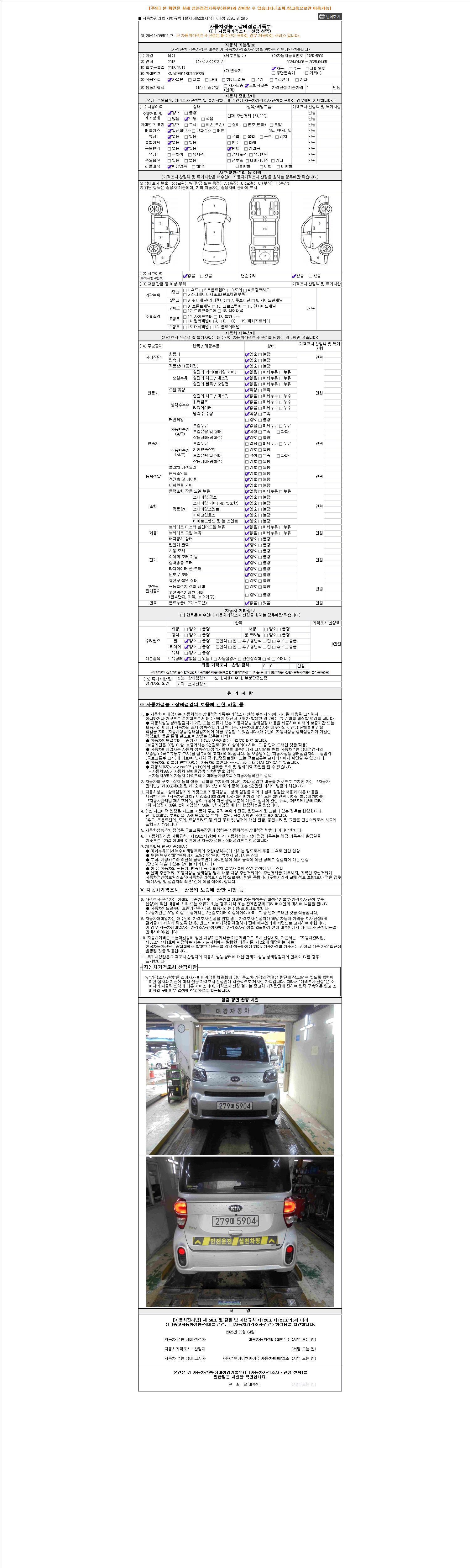 사고유무 성능기록부 참조 제시번호 제 2025026776 호