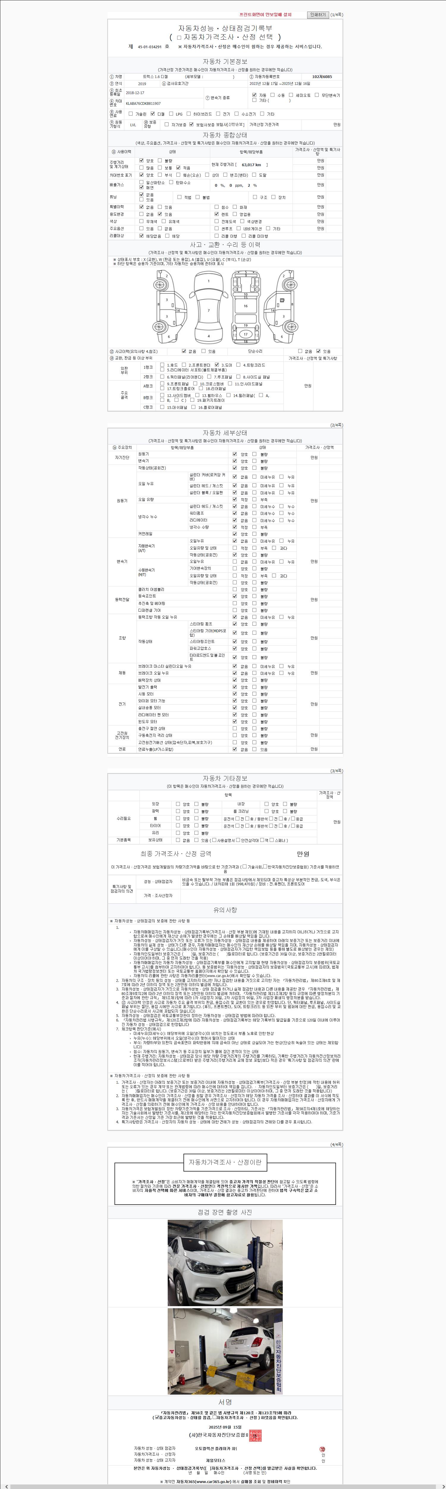 사고유무 성능기록부 참조 제시번호 제 2147483647 호
