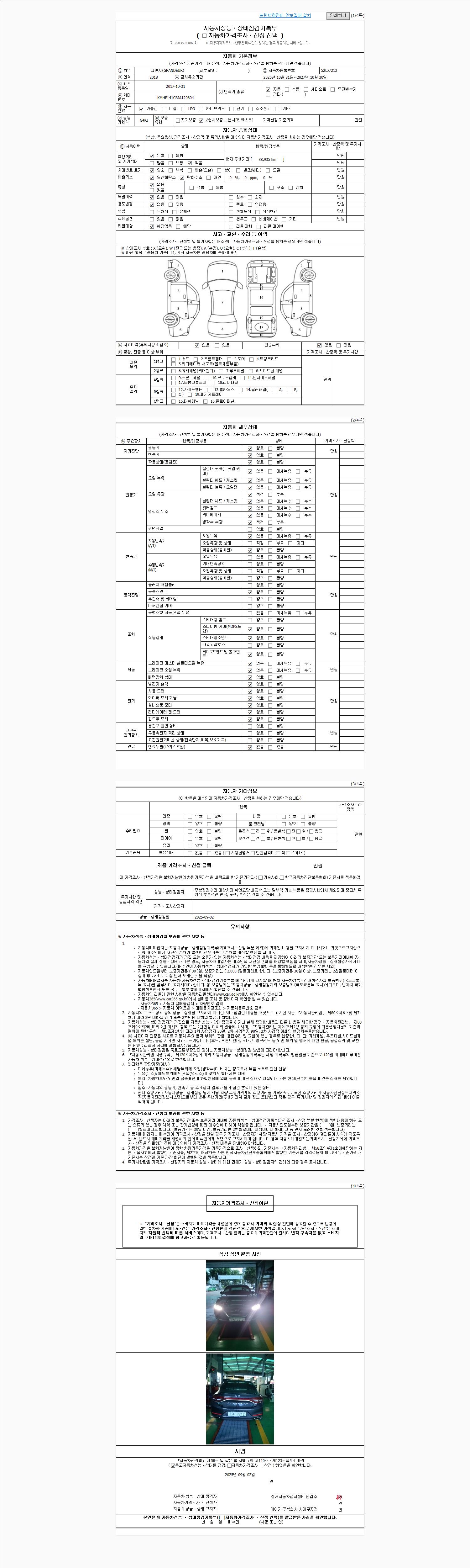 2. 차량 등록증이나 성능점검지 등을 상담자에게 요청및 확인하시고 사전에 미리 점검 하시기를 권유드립니다.