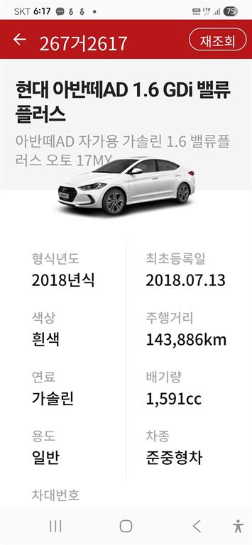 오토|휘발유|2018년 7월|143,900 km 267거2617| cc|흰색|무사고 |