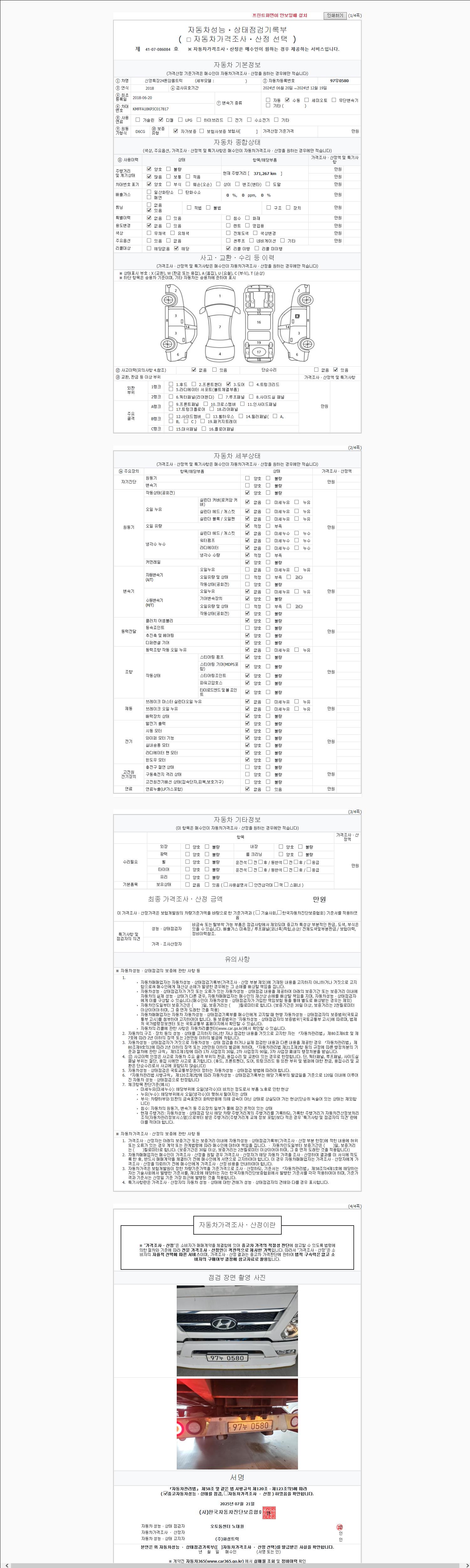 | 주행거리 | 371,200 km | 차량번호 | 97우0580 |
