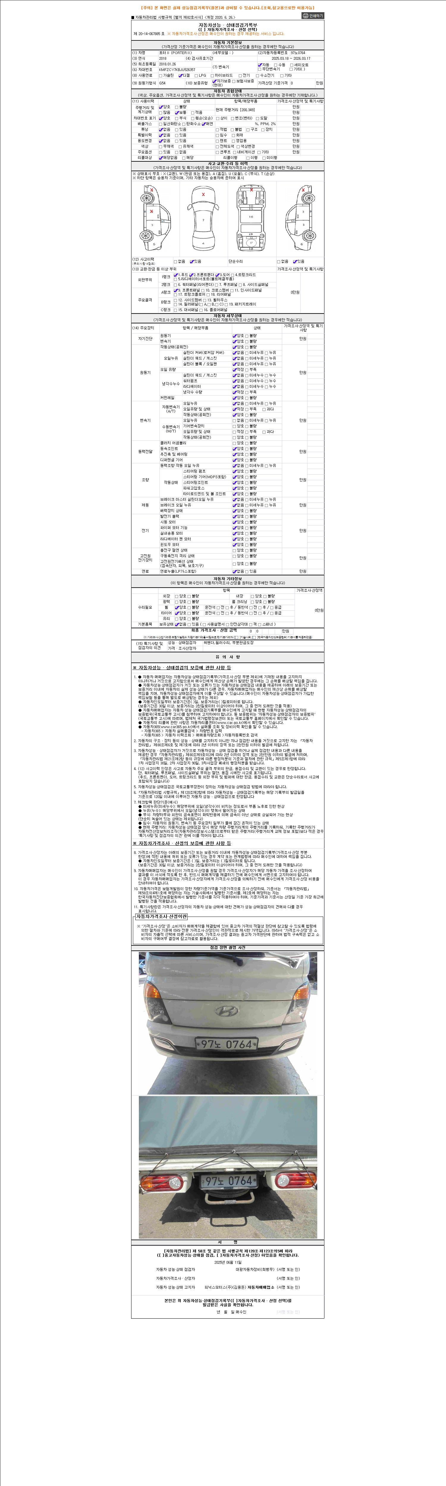 사고유무 성능기록부 참조 제시번호 제 2025076203 호
