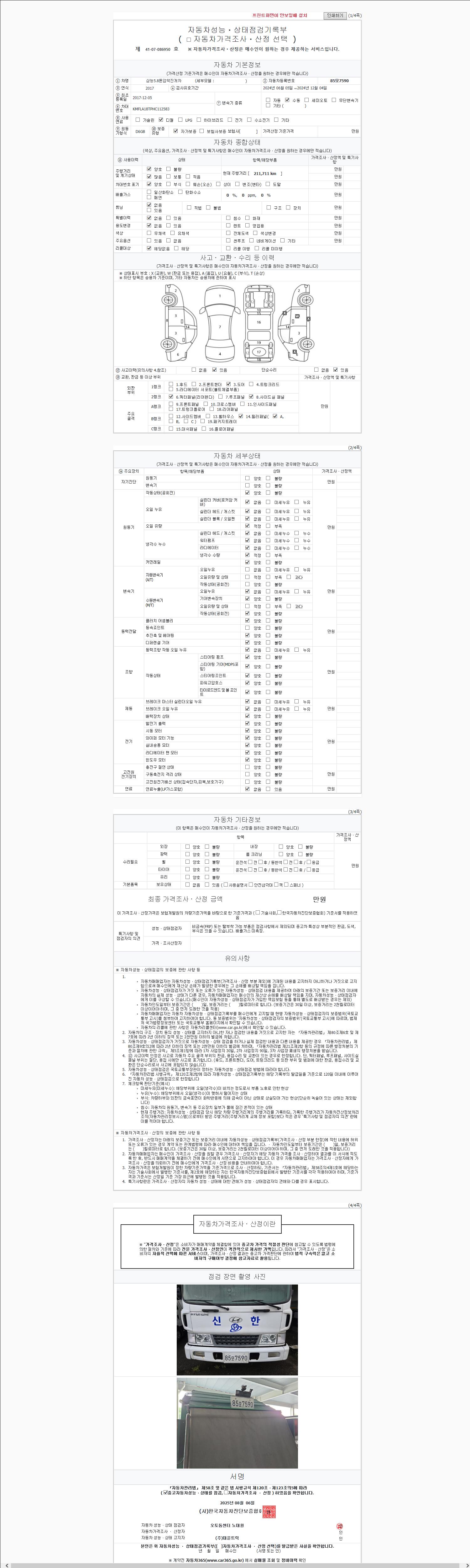 | 주행거리 | 211,008 km | 차량번호 | 85모7590 |