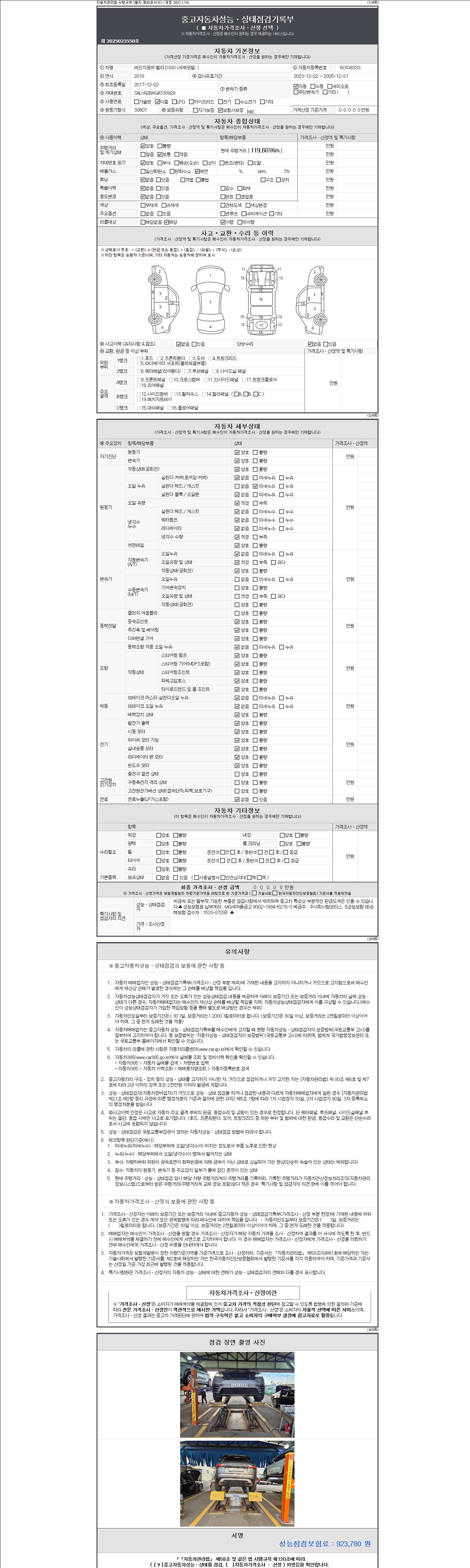 주행거리 119,601 km 차량번호 163다8333
