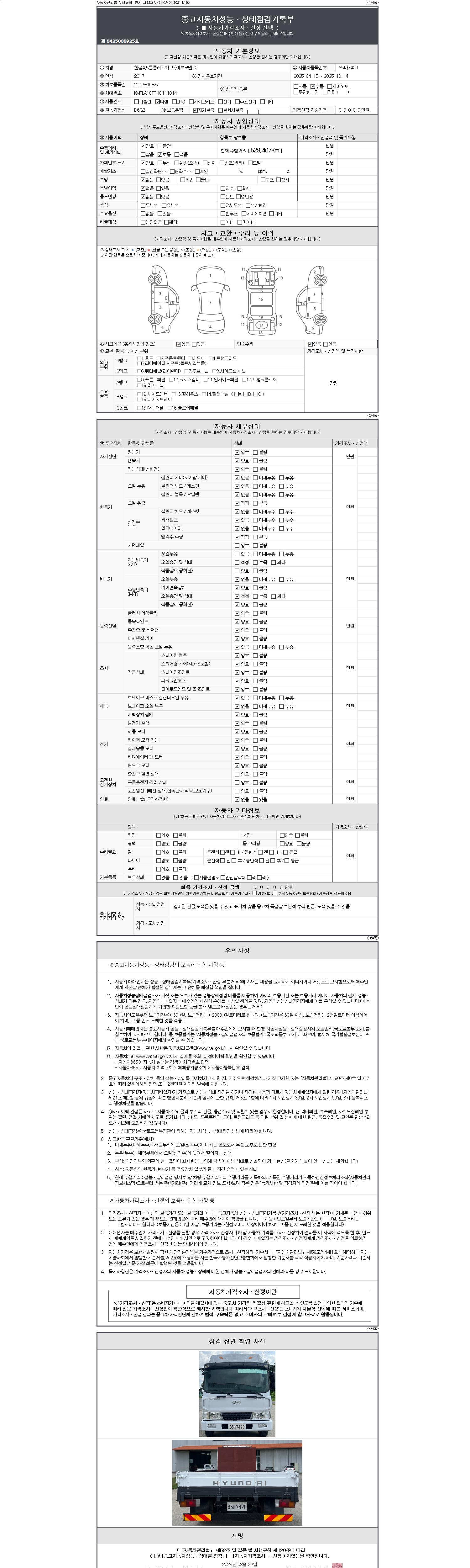 | 주행거리 | 529,317 km | 차량번호 | 85마7420 |