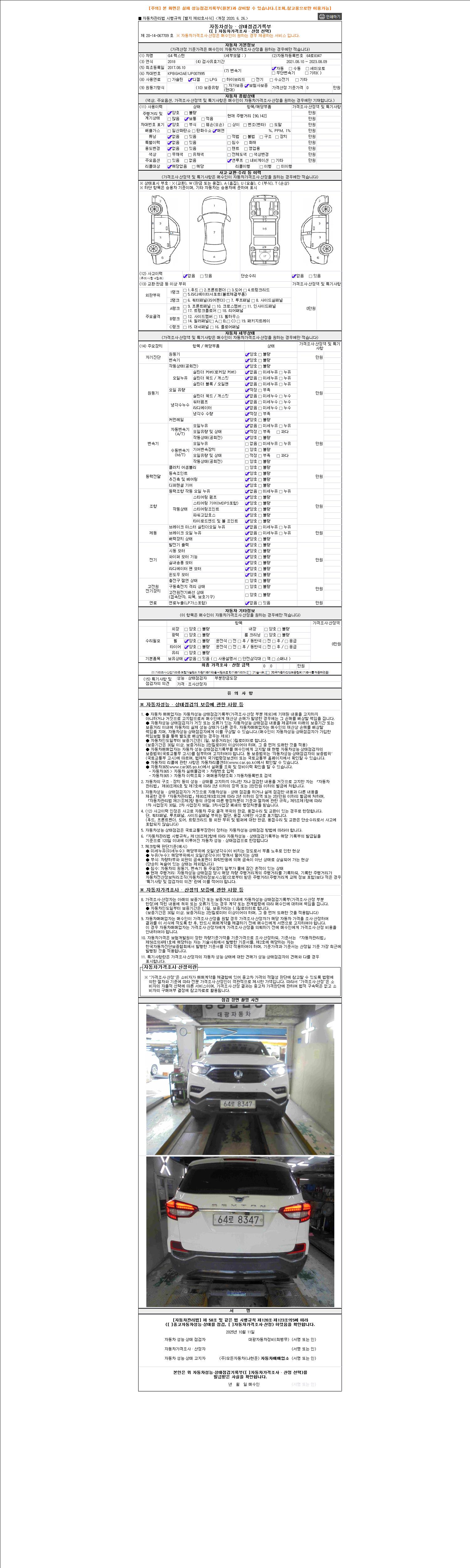 2. 차량 등록증이나 성능점검지 등을 상담자에게 요청및 확인하시고 사전에 미리 점검 하시기를 권유드립니다.