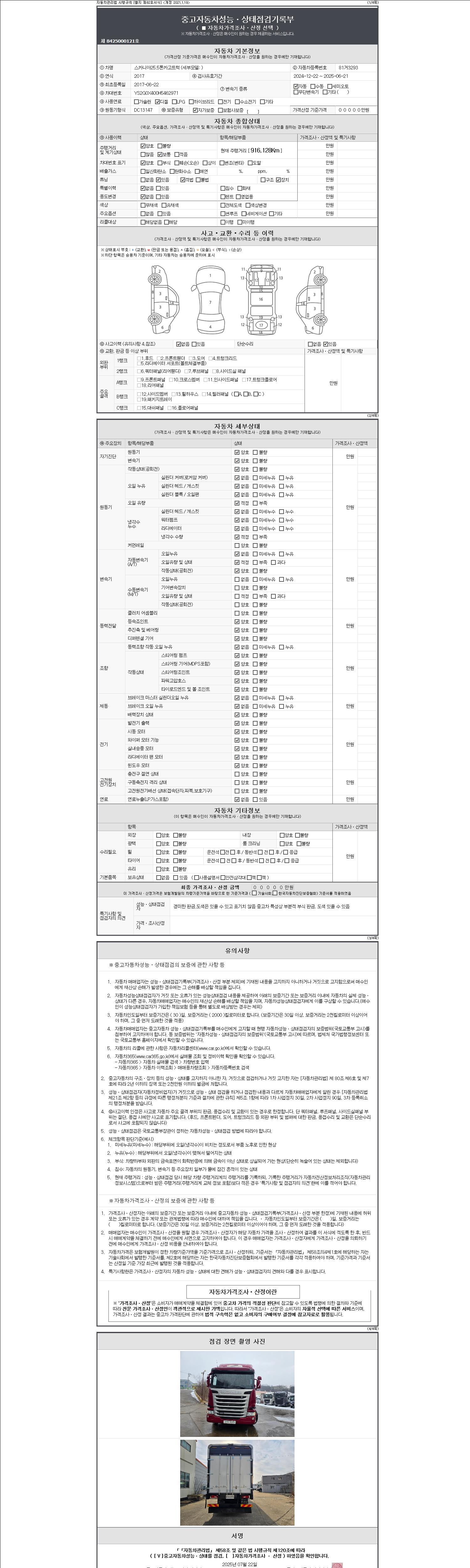 사고유무 성능기록부 참조 제시번호 제 2147483647 호