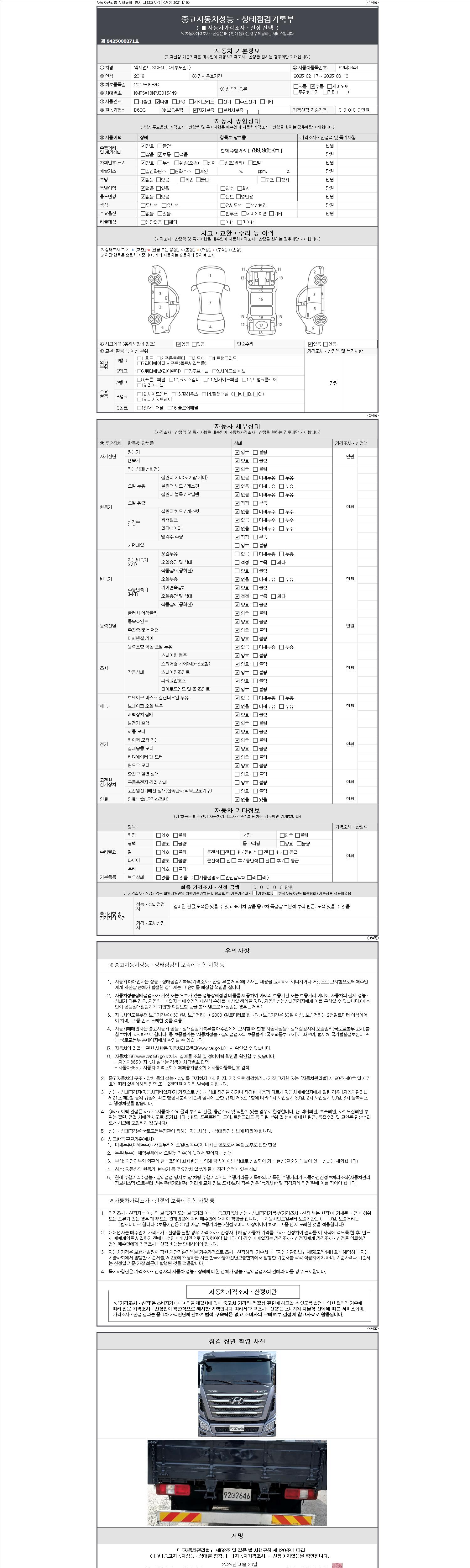 | 주행거리 | 799,732 km | 차량번호 | 92더2646 |