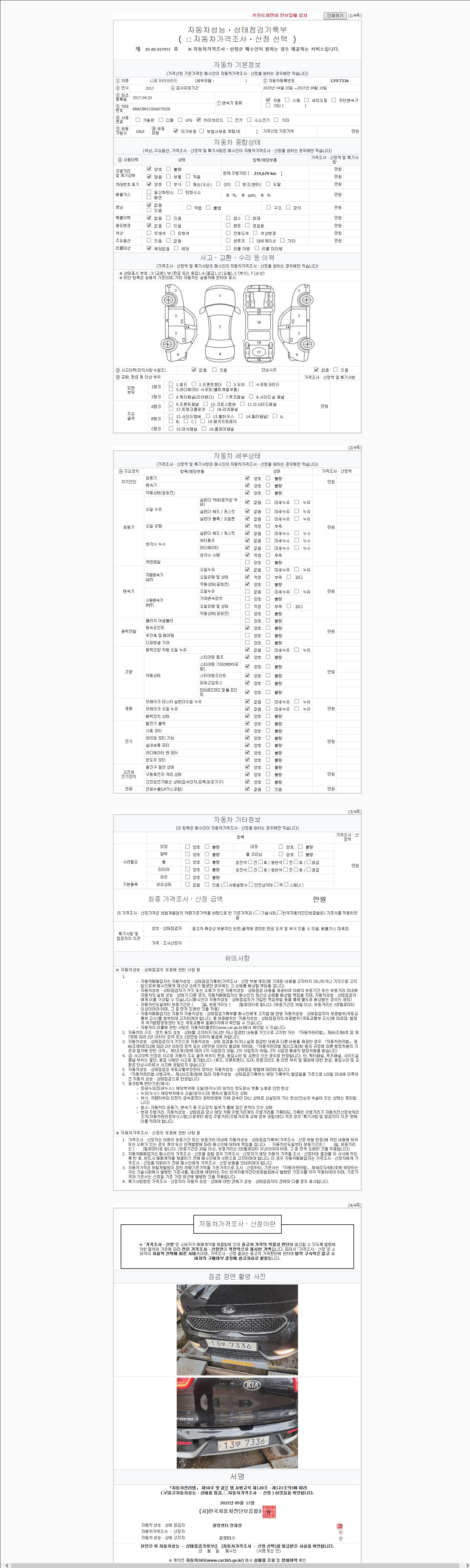 2. 차량 등록증이나 성능점검지 등을 상담자에게 요청및 확인하시고 사전에 미리 점검 하시기를 권유드립니다.