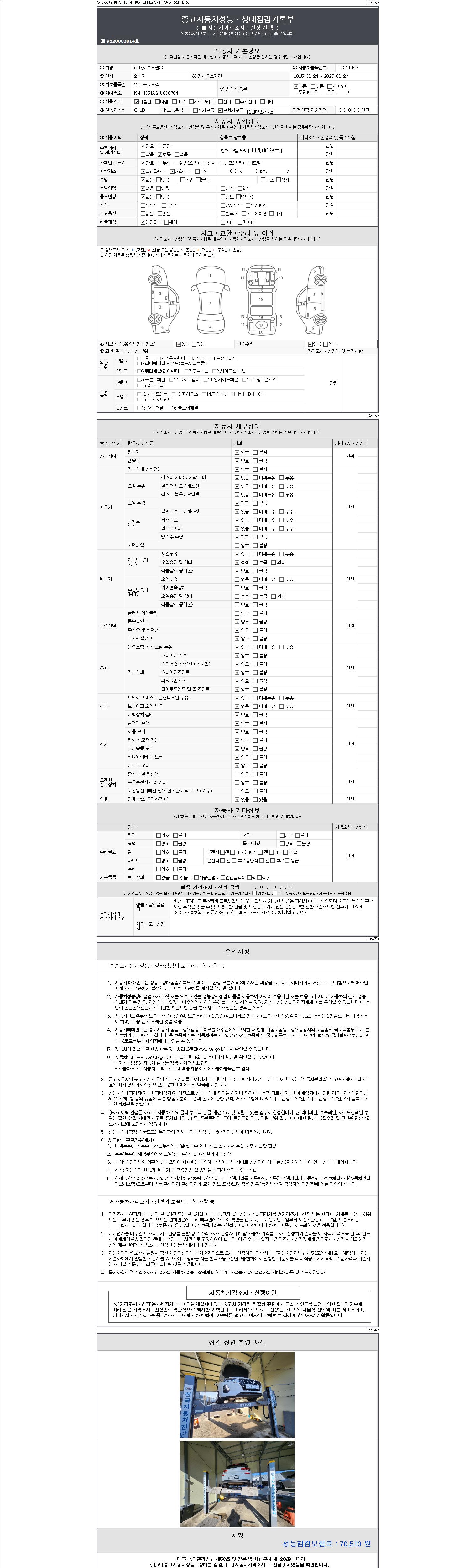 2. 차량 등록증이나 성능점검지 등을 상담자에게 요청및 확인하시고 사전에 미리 점검 하시기를 권유드립니다.
