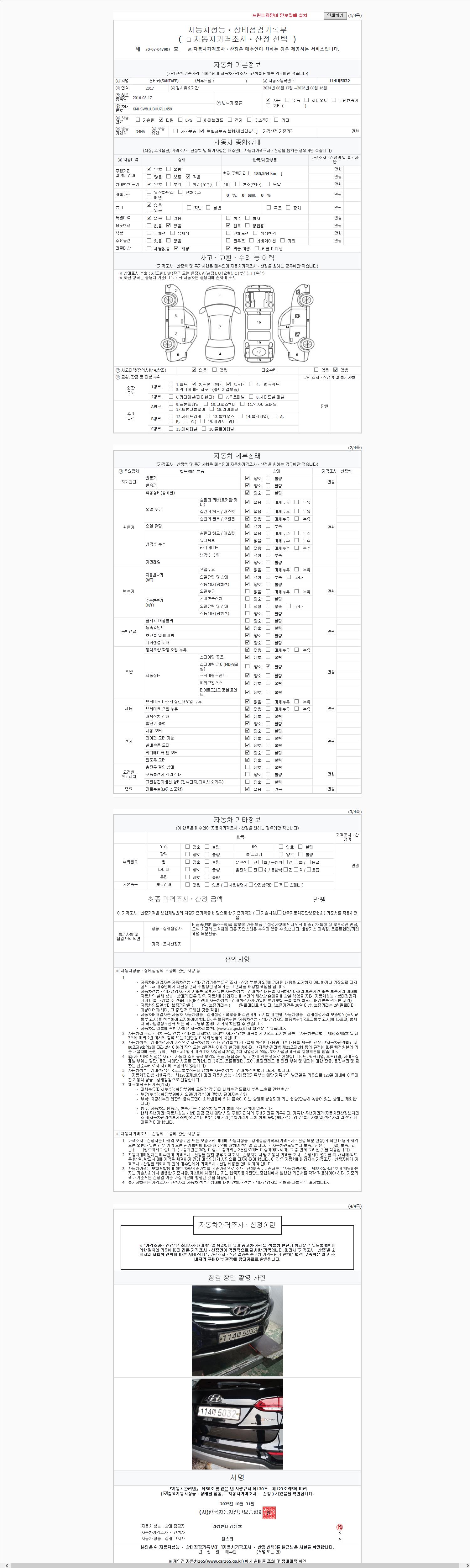 2. 차량 등록증이나 성능점검지 등을 상담자에게 요청및 확인하시고 사전에 미리 점검 하시기를 권유드립니다.