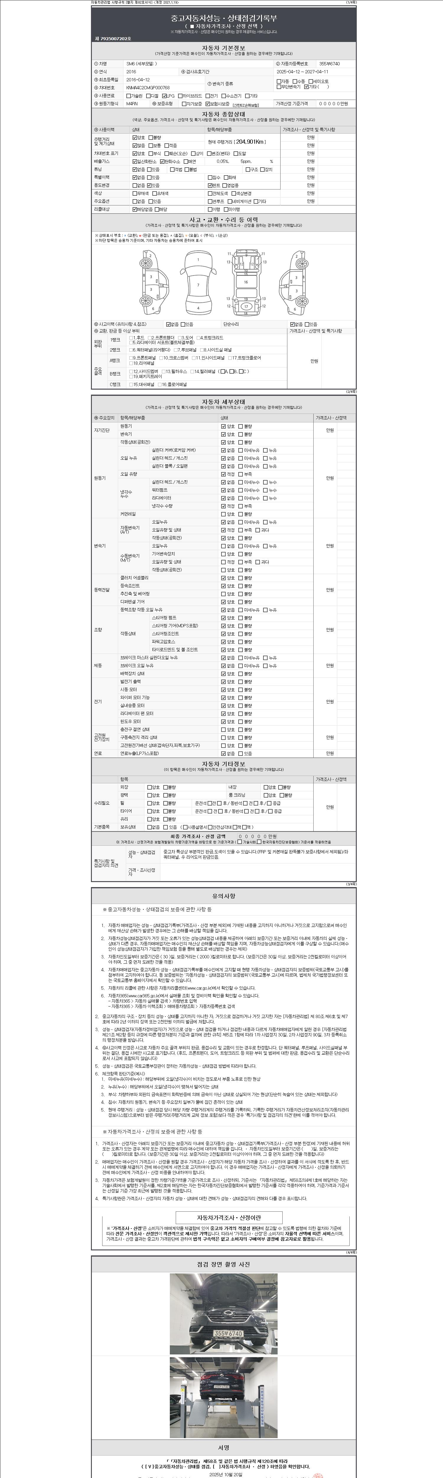 | 주행거리 | 204,901 km | 차량번호 | 355부6740 |