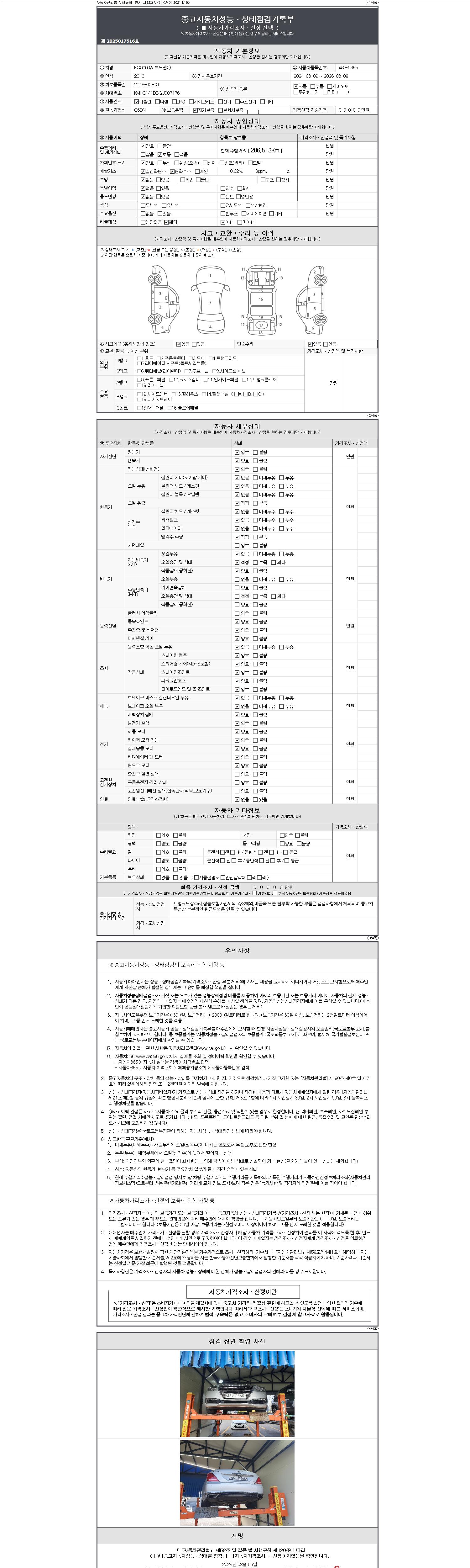2. 차량 등록증이나 성능점검지 등을 상담자에게 요청및 확인하시고 사전에 미리 점검 하시기를 권유드립니다.