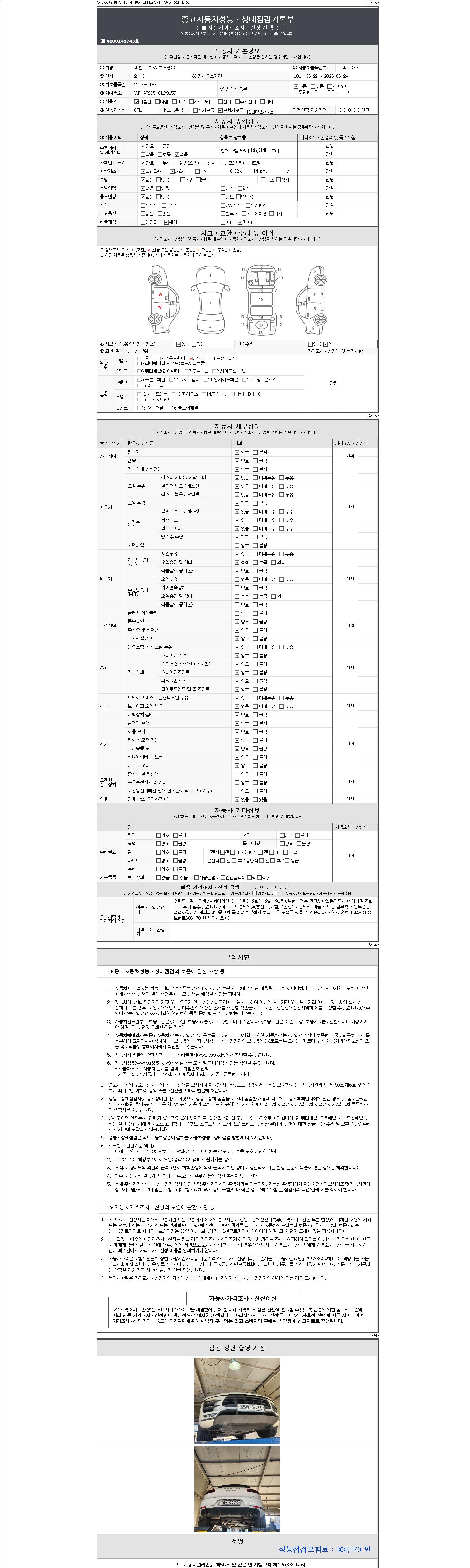 2. 차량 등록증이나 성능점검지 등을 상담자에게 요청및 확인하시고 사전에 미리 점검 하시기를 권유드립니다.