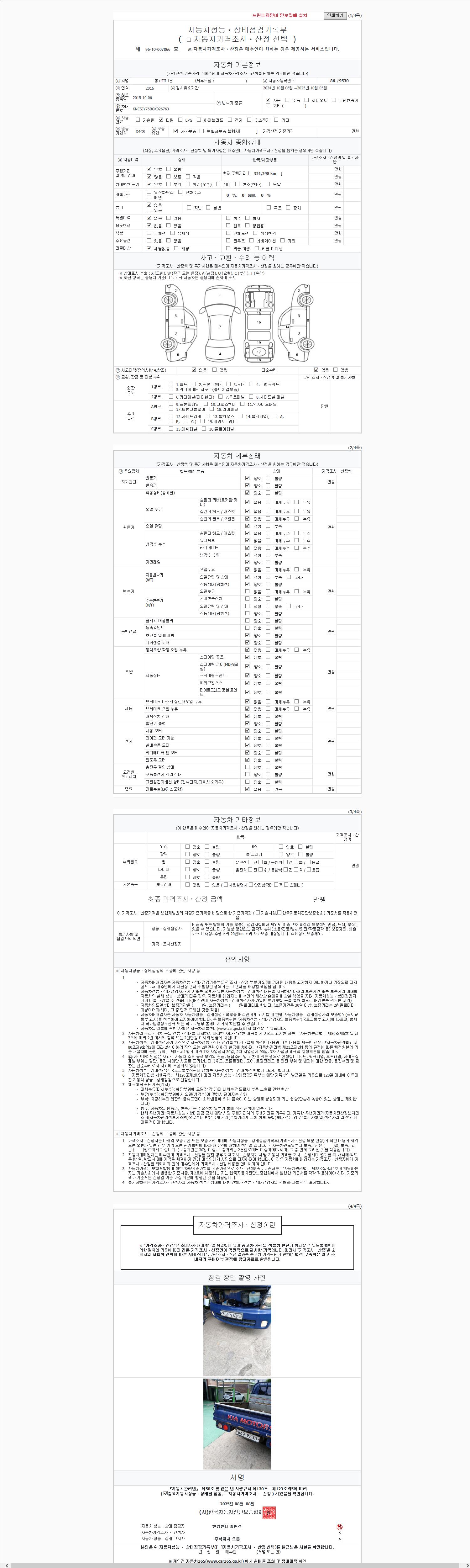 | 주행거리 | 321,298 km | 차량번호 | 86구9530 |