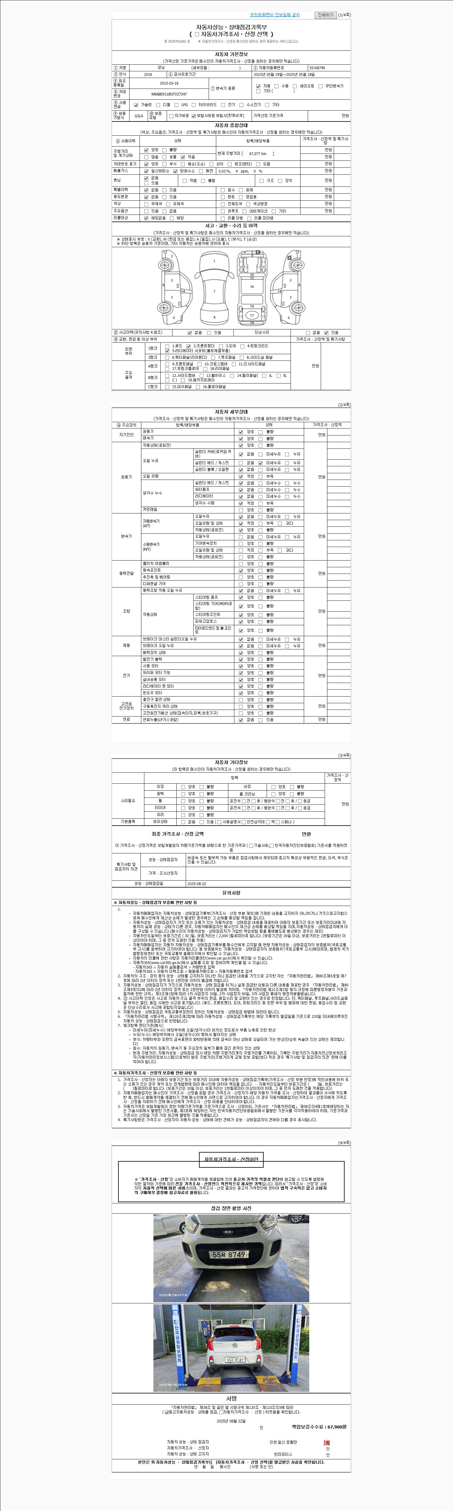 | 주행거리 | 67,077 km | 차량번호 | 55서8749 |