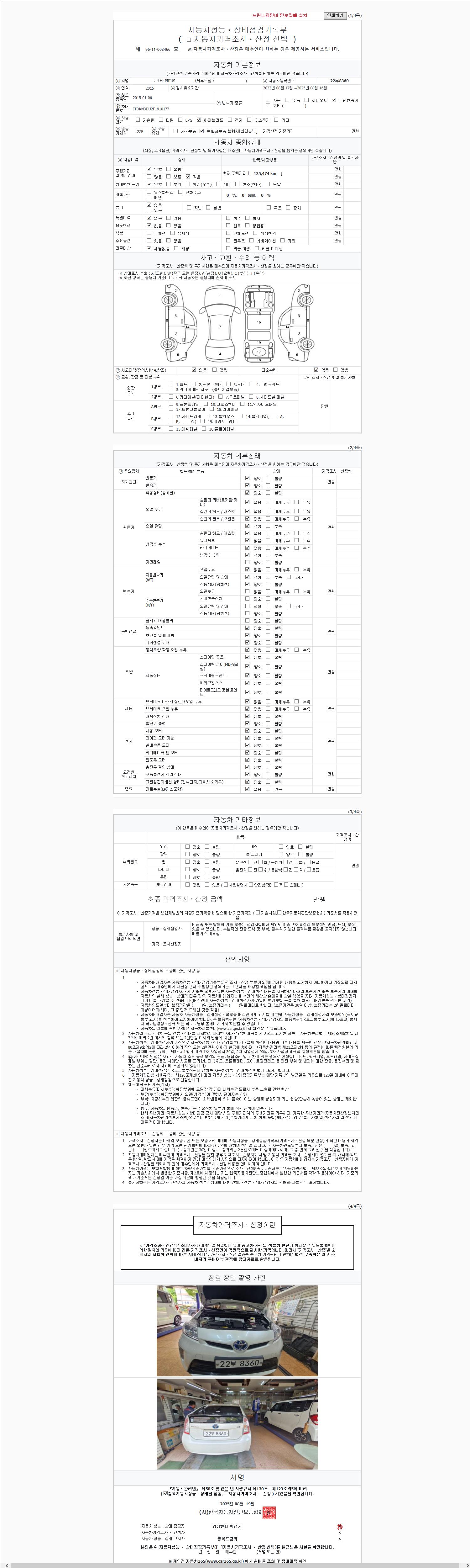 2. 차량 등록증이나 성능점검지 등을 상담자에게 요청및 확인하시고 사전에 미리 점검 하시기를 권유드립니다.