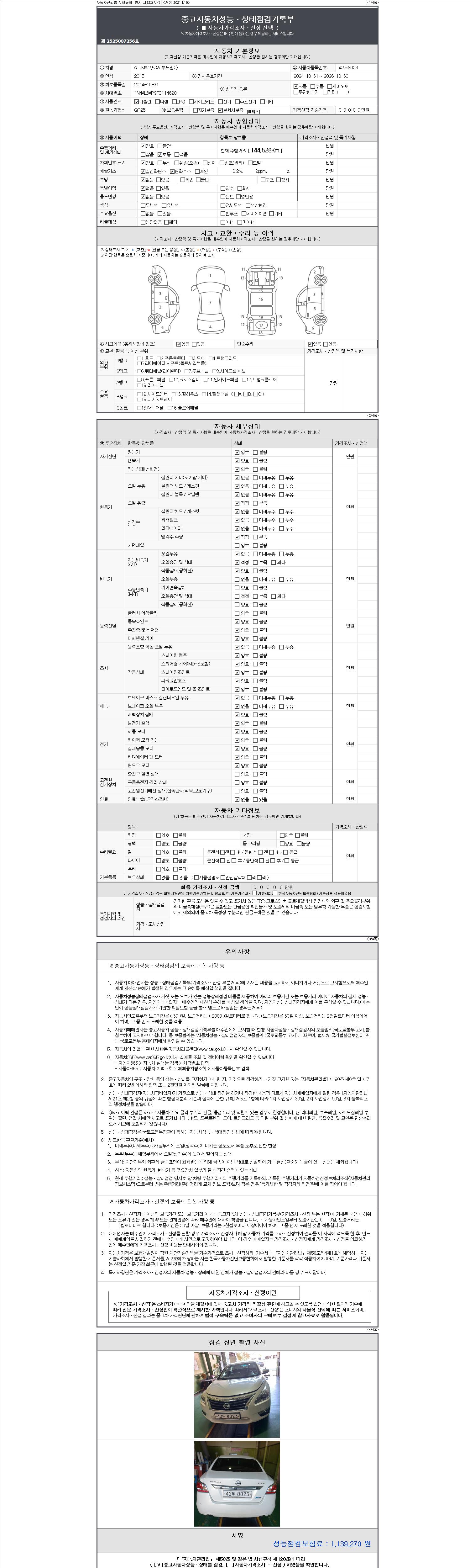 -중고자동차 매매업자를 통해 차량을 구입하실 경우 반드시 "중고자동차 성능, 상태점검 기록부"를 교뷰 받으셔야 하며, 매매업자는 반드시 의무 교부 하여야 압니다.