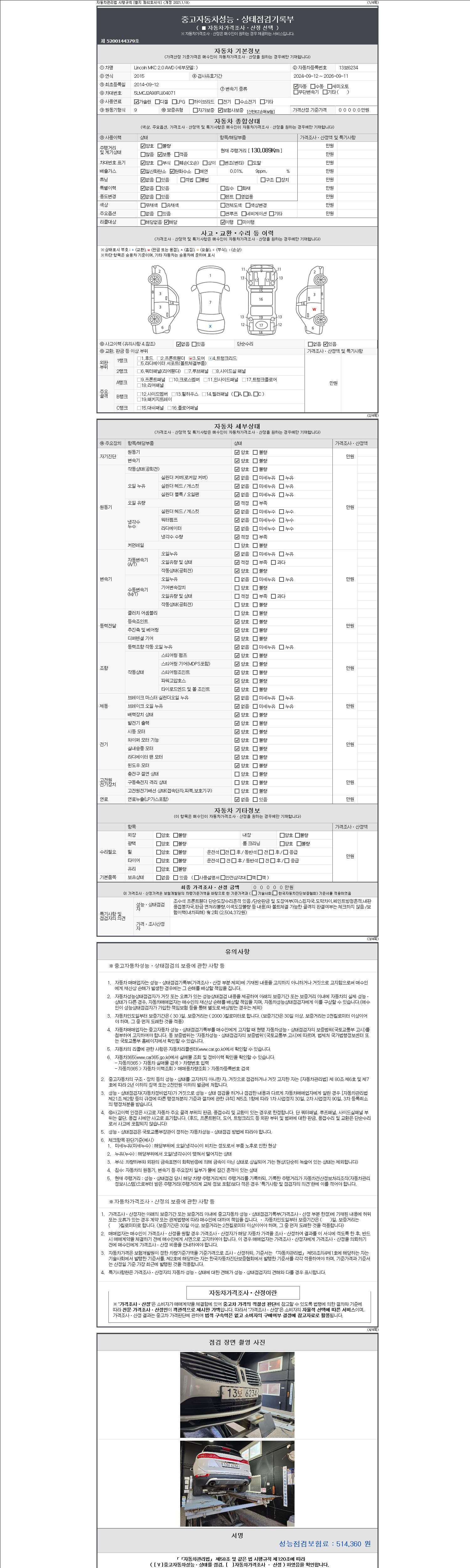 2. 차량 등록증이나 성능점검지 등을 상담자에게 요청및 확인하시고 사전에 미리 점검 하시기를 권유드립니다.