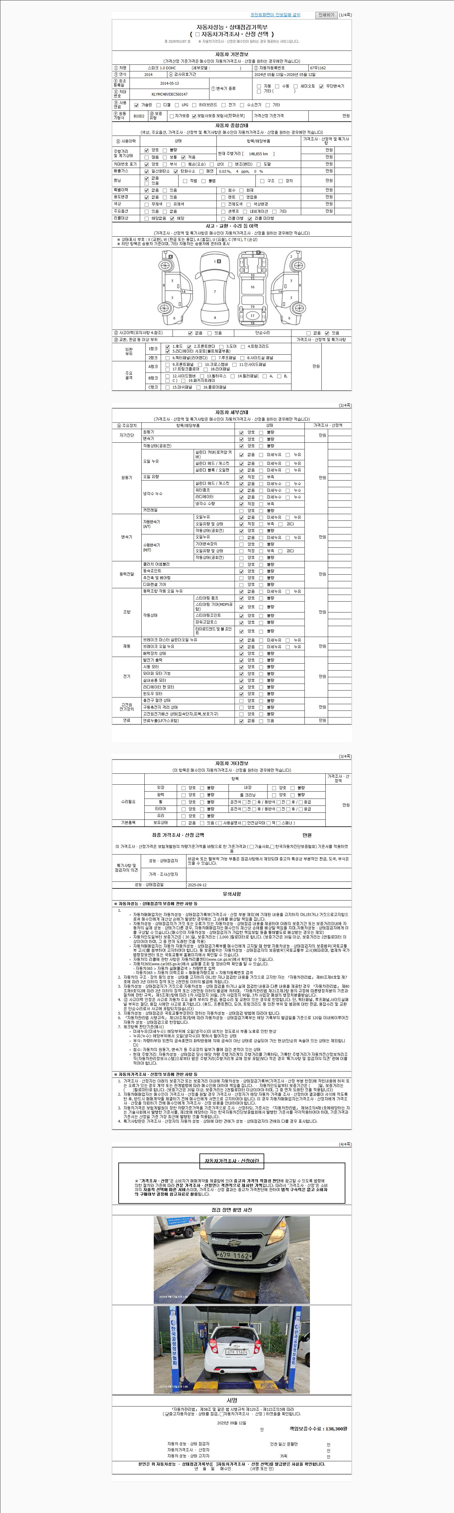-중고자동차 매매업자를 통해 차량을 구입하실 경우 반드시 "중고자동차 성능, 상태점검 기록부"를 교뷰 받으셔야 하며, 매매업자는 반드시 의무 교부 하여야 압니다.