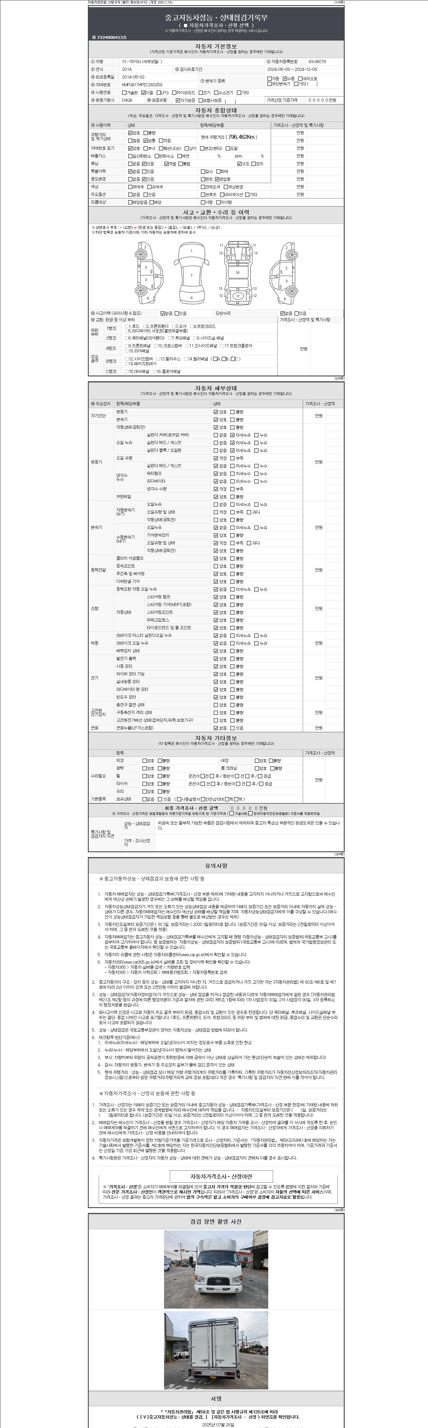 | 주행거리 | 796,461 km | 차량번호 | 93너6078 |