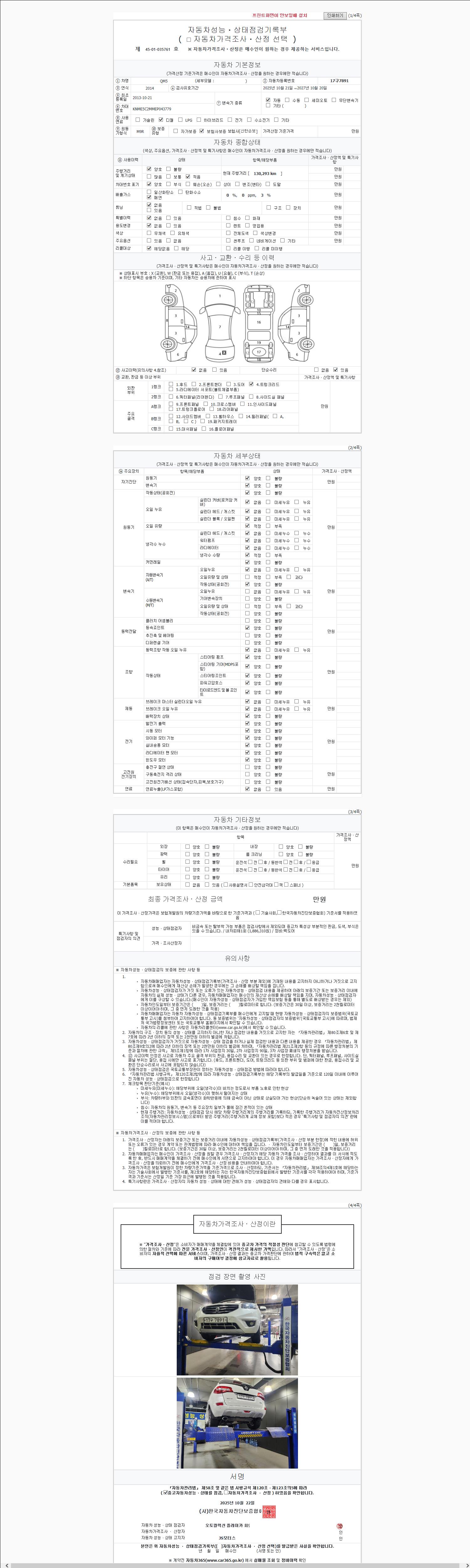 2. 차량 등록증이나 성능점검지 등을 상담자에게 요청및 확인하시고 사전에 미리 점검 하시기를 권유드립니다.