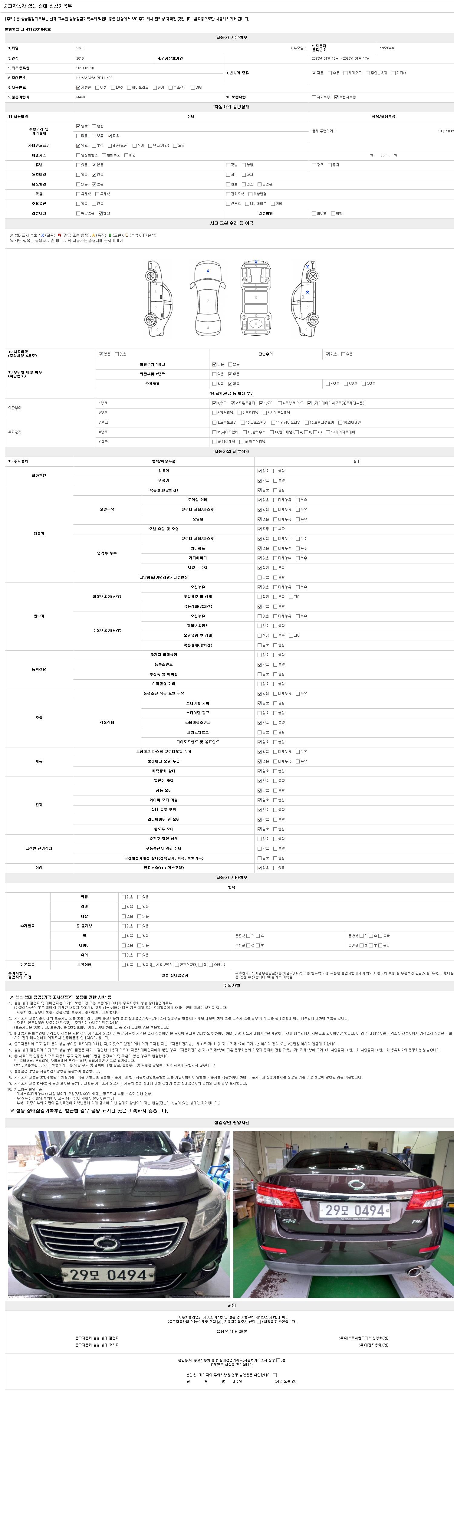 2. 차량 등록증이나 성능점검지 등을 상담자에게 요청및 확인하시고 사전에 미리 점검 하시기를 권유드립니다.