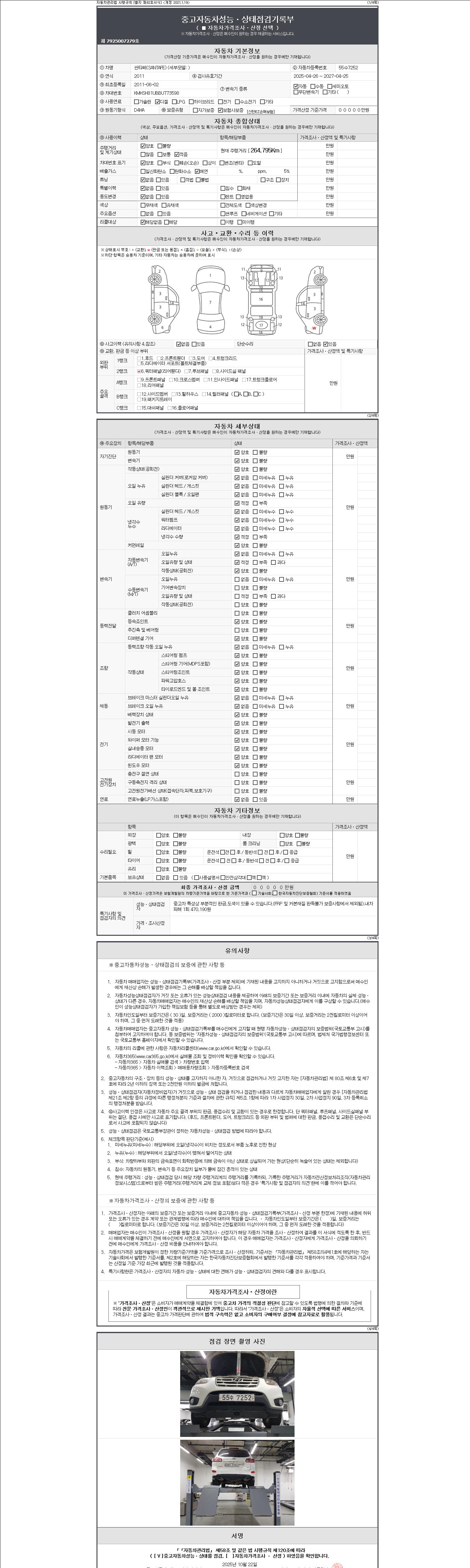 2. 차량 등록증이나 성능점검지 등을 상담자에게 요청및 확인하시고 사전에 미리 점검 하시기를 권유드립니다.