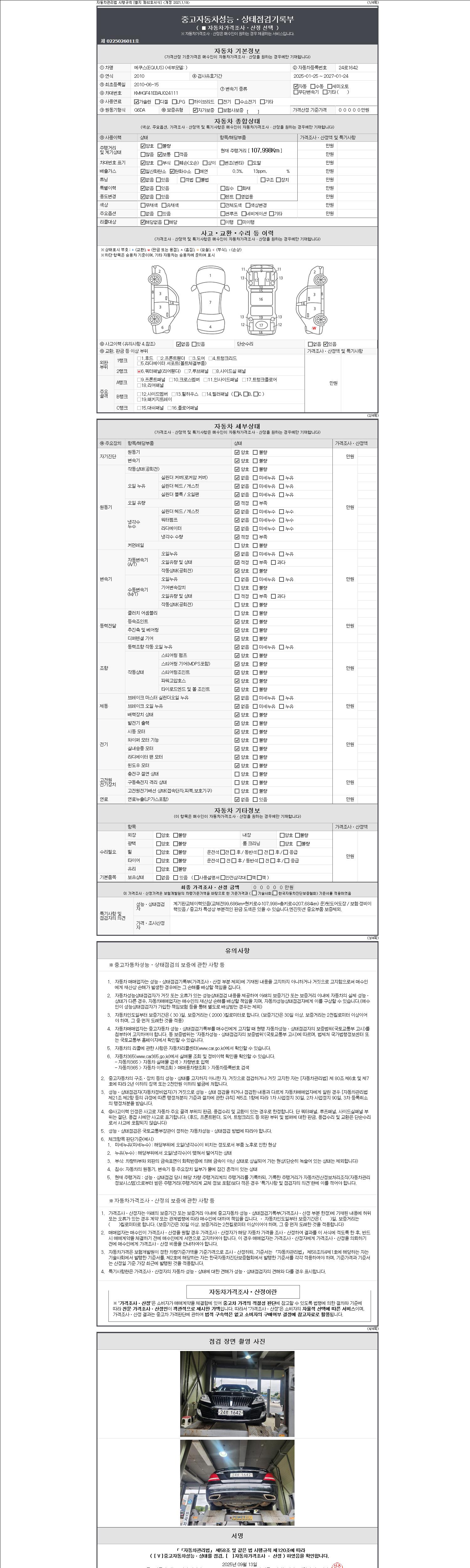 2. 차량 등록증이나 성능점검지 등을 상담자에게 요청및 확인하시고 사전에 미리 점검 하시기를 권유드립니다.