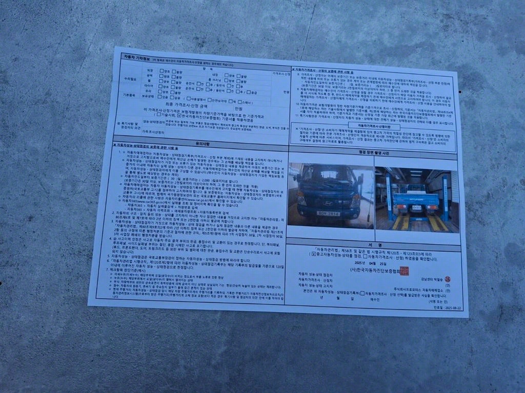 -중고자동차 매매업자를 통해 차량을 구입하실 경우 반드시 "중고자동차 성능, 상태점검 기록부"를 교뷰 받으셔야 하며, 매매업자는 반드시 의무 교부 하여야 압니다.